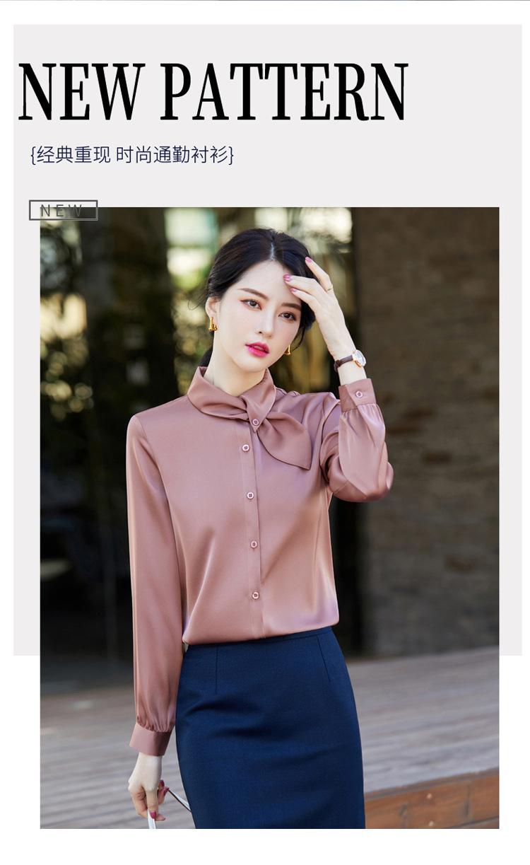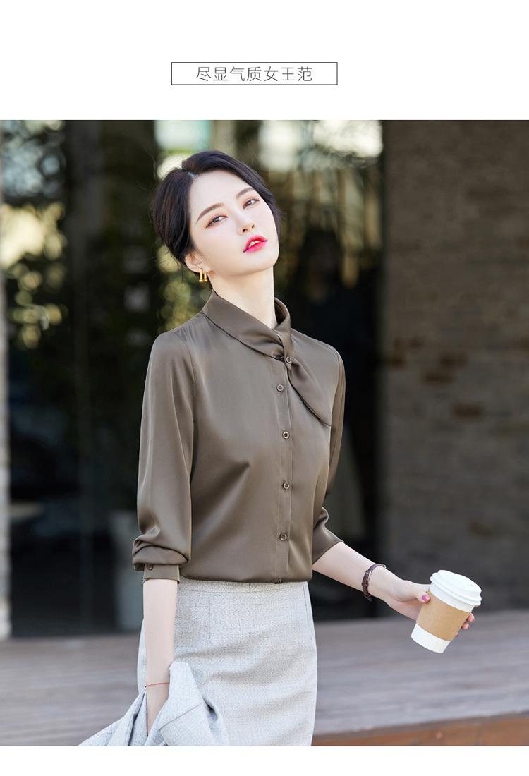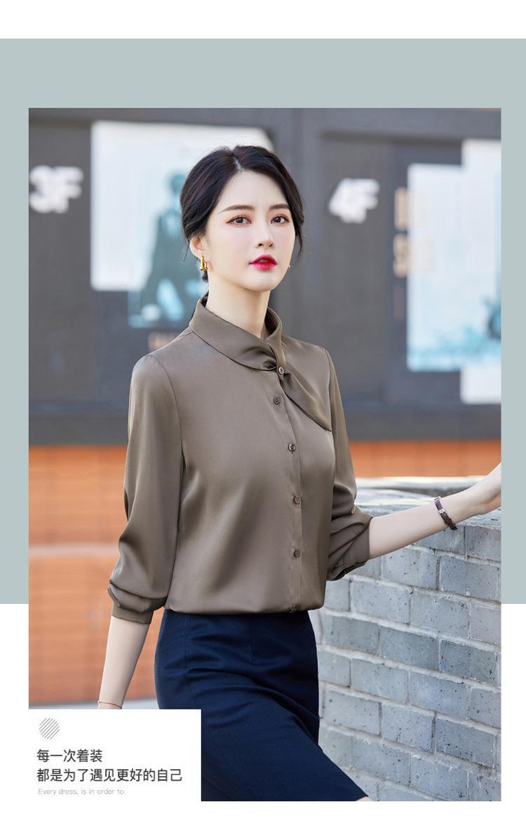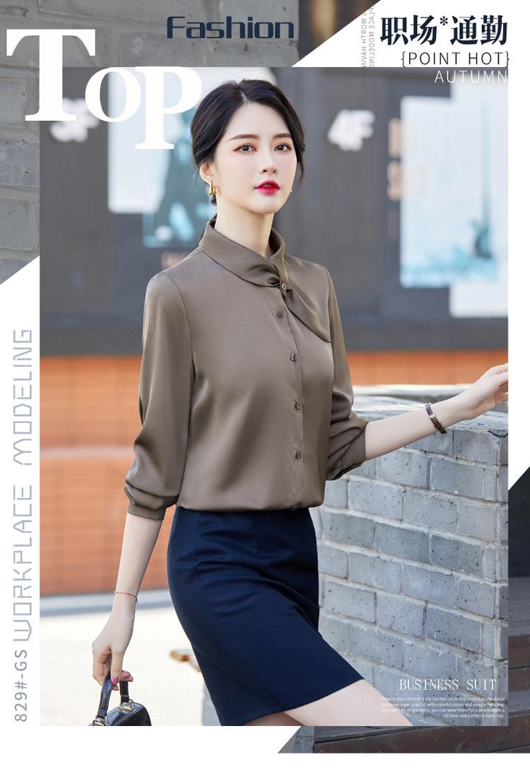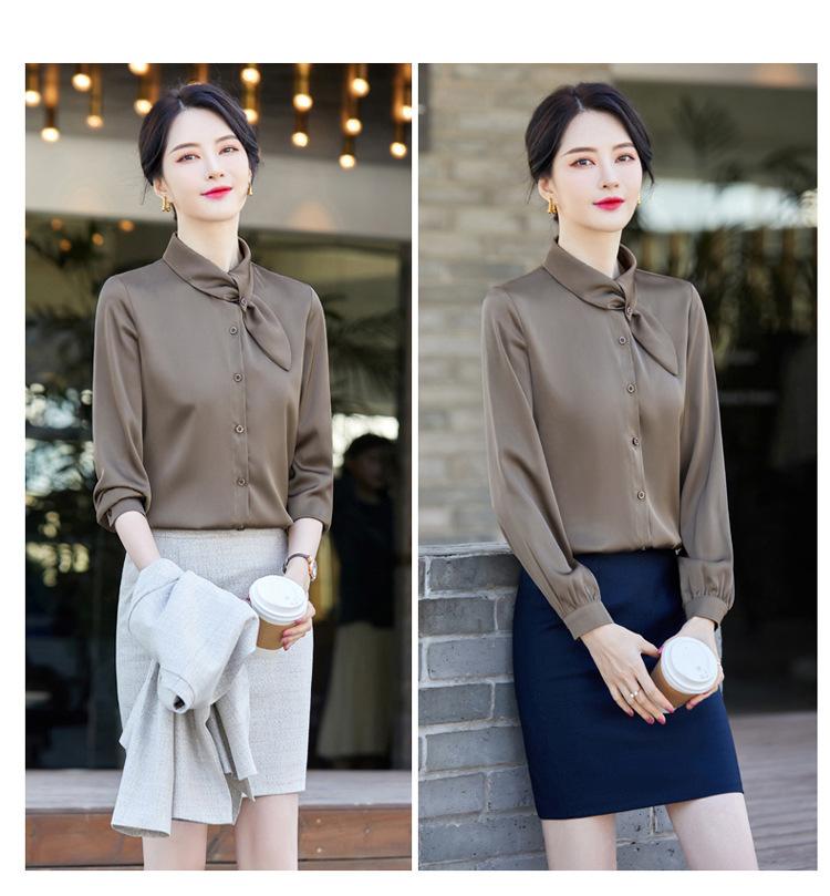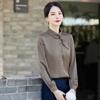 Camisa elegante de moda para mujer, diseño de ropa de otoño, manga larga, holgada, para llevar debajo, manga larga, café, ropa de trabajo de oficina