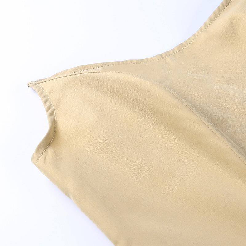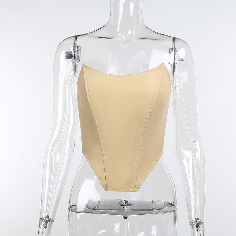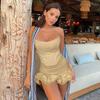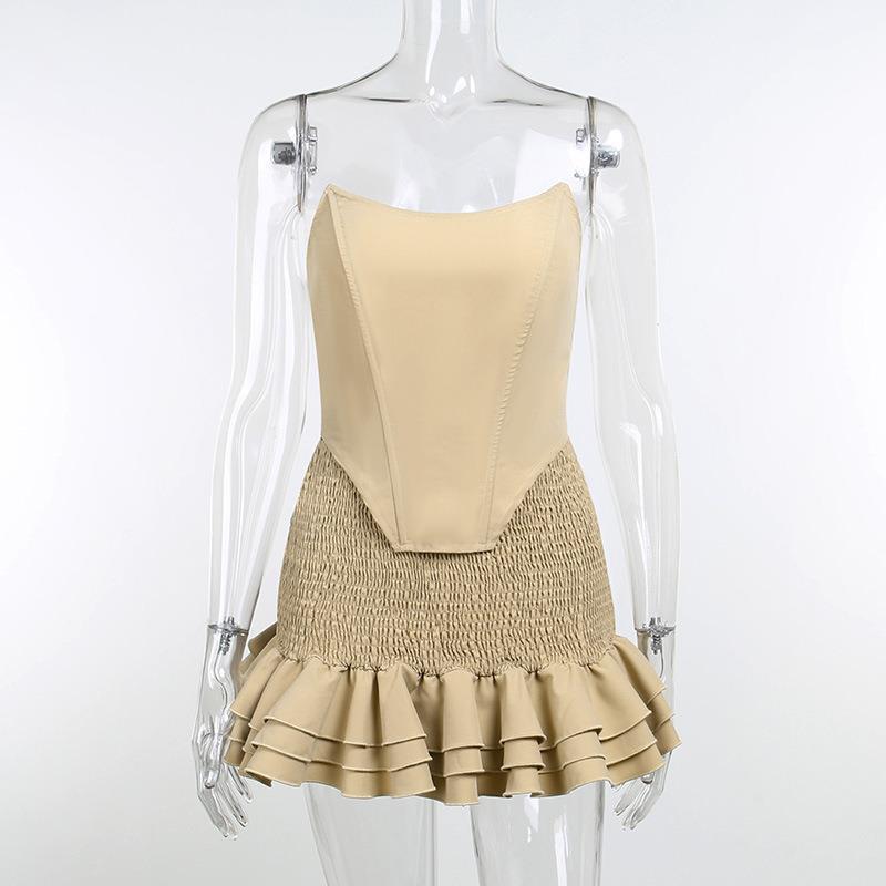2022 Primavera y Verano Sexy Top Tubo Corsé de Chica Caliente Falda con Volantes Traje Color Sólido Falda de Cadera con Volantes