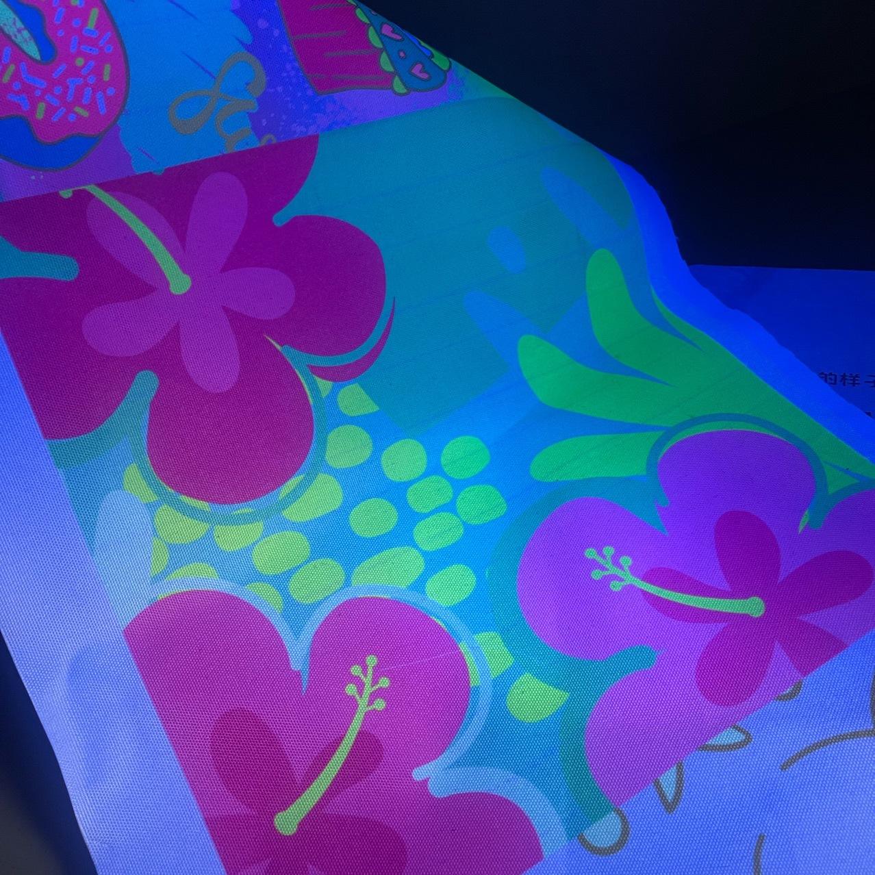 Impresión en color fluorescente para exteriores, tela luminosa, impresión digital, tela de poliéster, brillo nocturno, nuevo