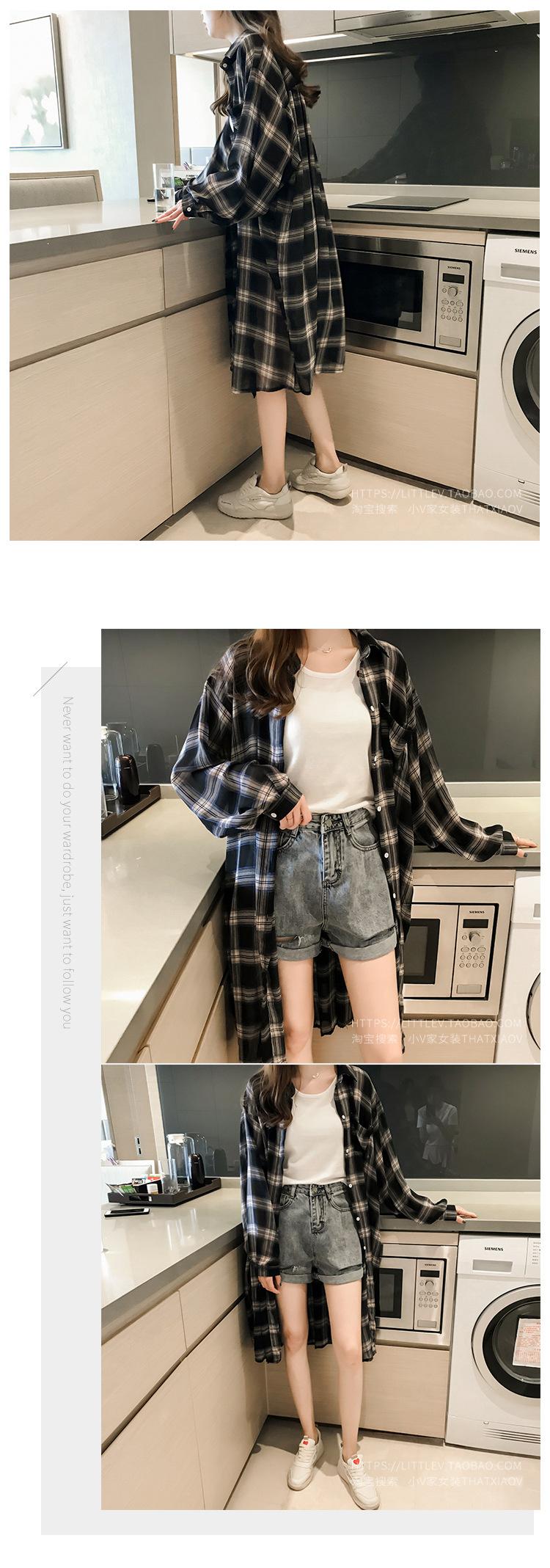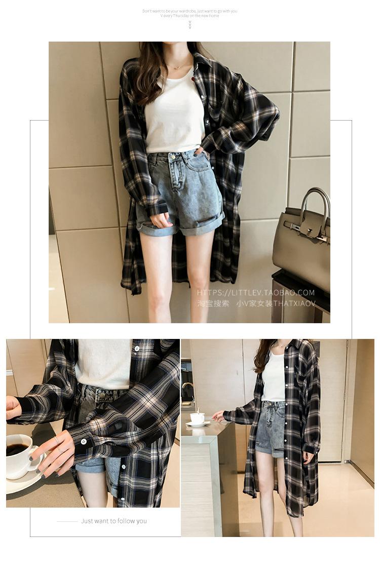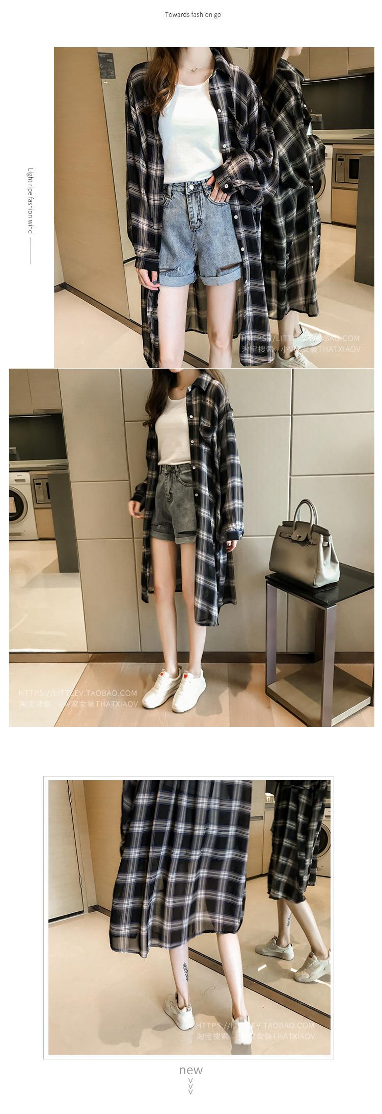 Comercio Exterior Gordo mm Talla Grande Cuadros Ropa de Protección Solar para Mujer 2025 Verano Nuevo Versátil Suelto Medio Largo Abrigo Cárdigan Delgado
