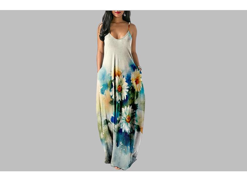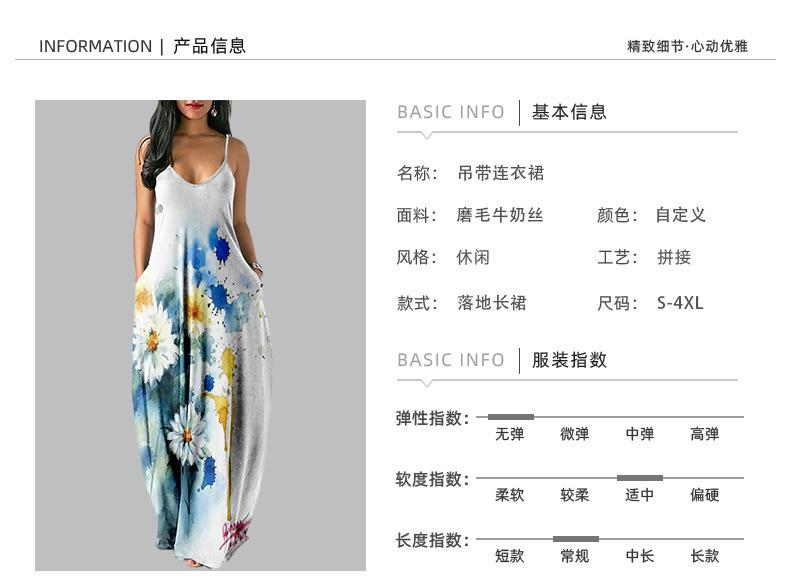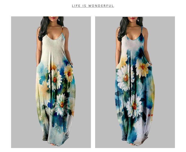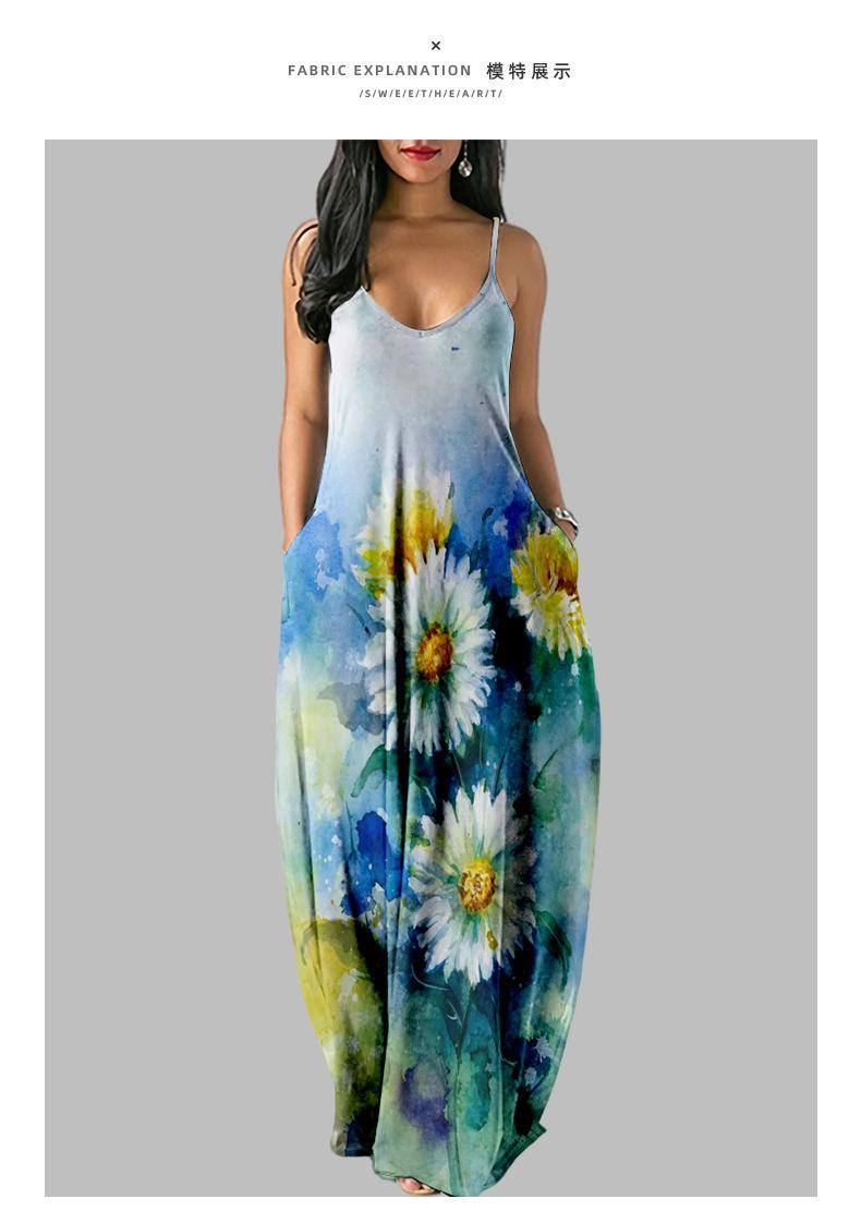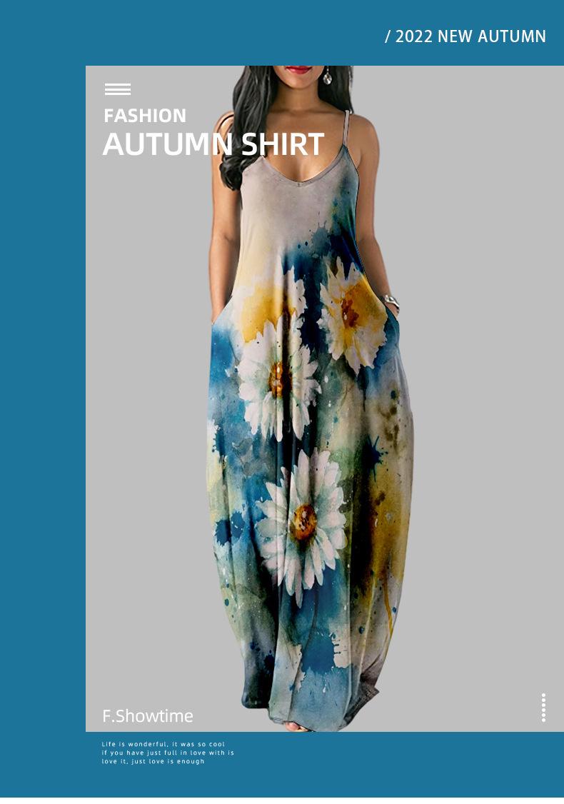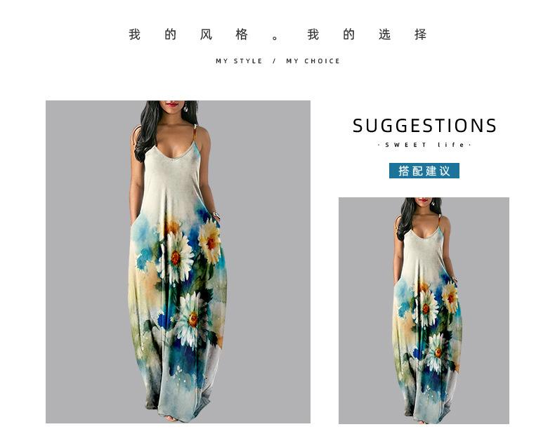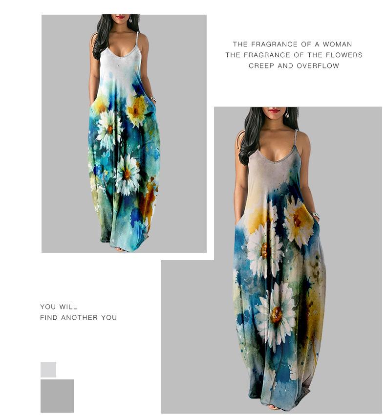 Nuevo Vestido Largo de Verano Fresco con Tirantes de Amazon Estampado de Crisantemos Elegante Vestido de Calle al por Mayor