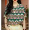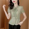 Camisa de gasa de manga corta con estampado floral para mujer, blusa fina con estampado francés, elegante y a la moda de verano.