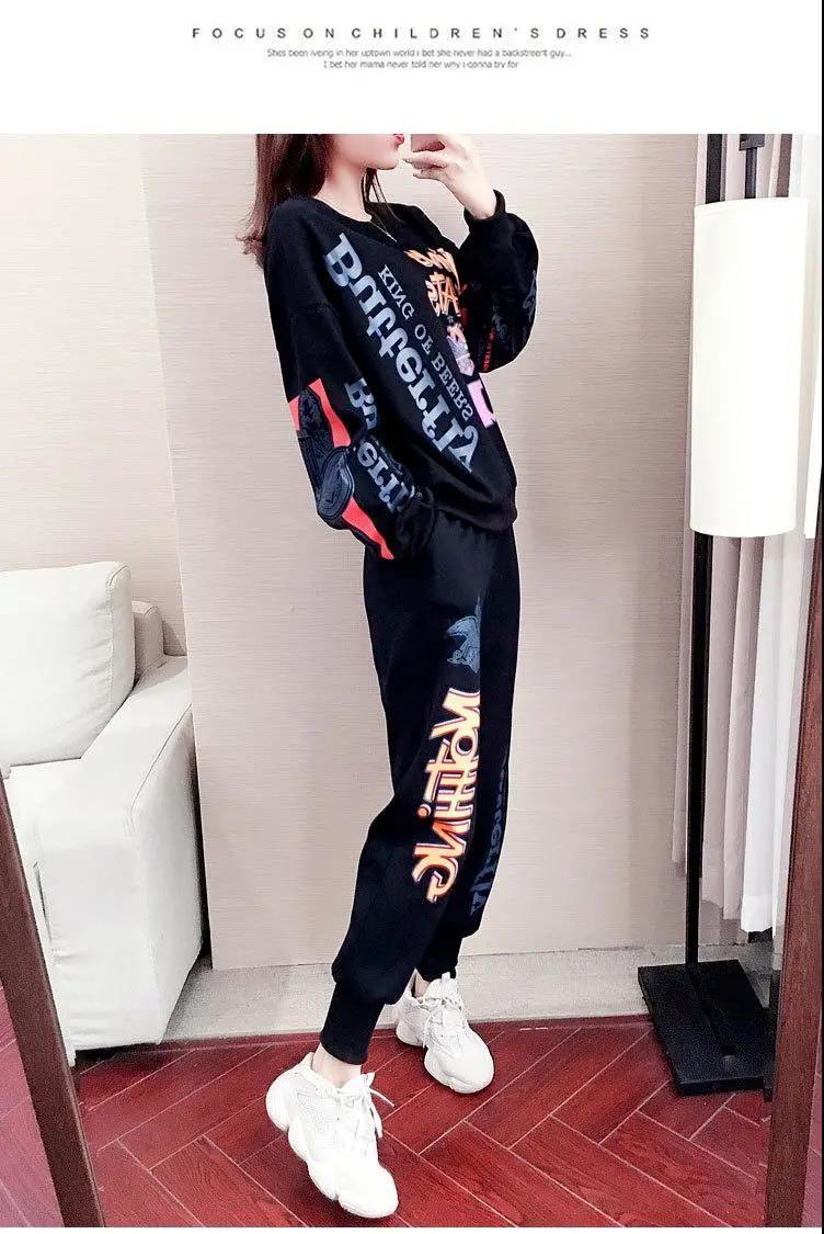 Conjunto deportivo para mujer, otoño 2024, nuevo, holgado, estilo coreano, para celebridades de Internet, estilo occidental, sudadera informal, conjunto de dos piezas
