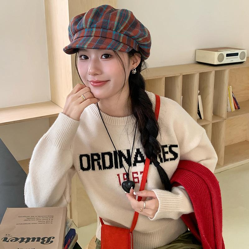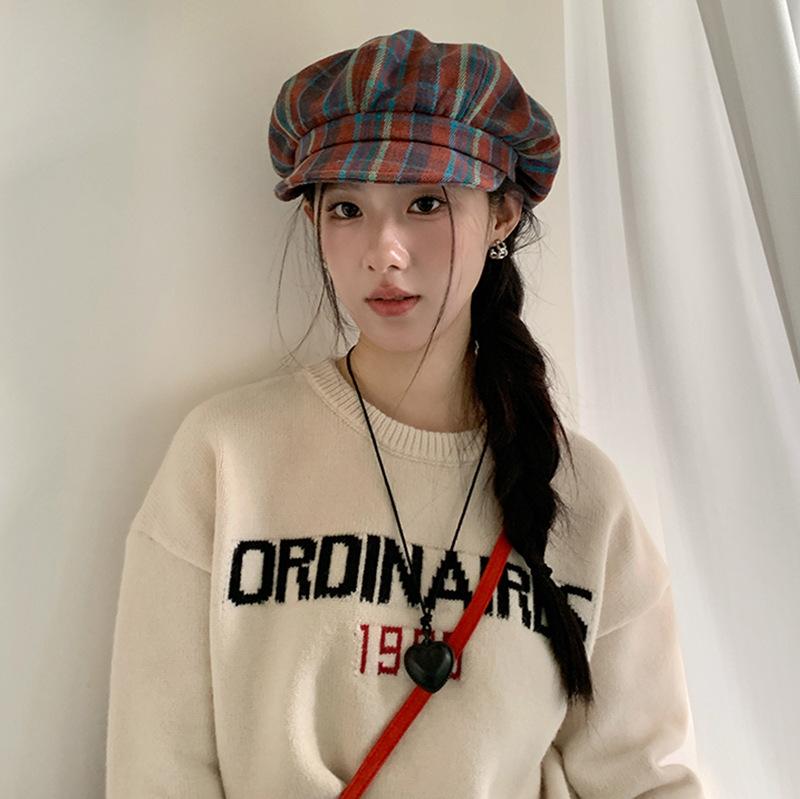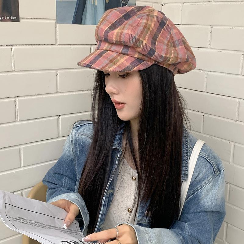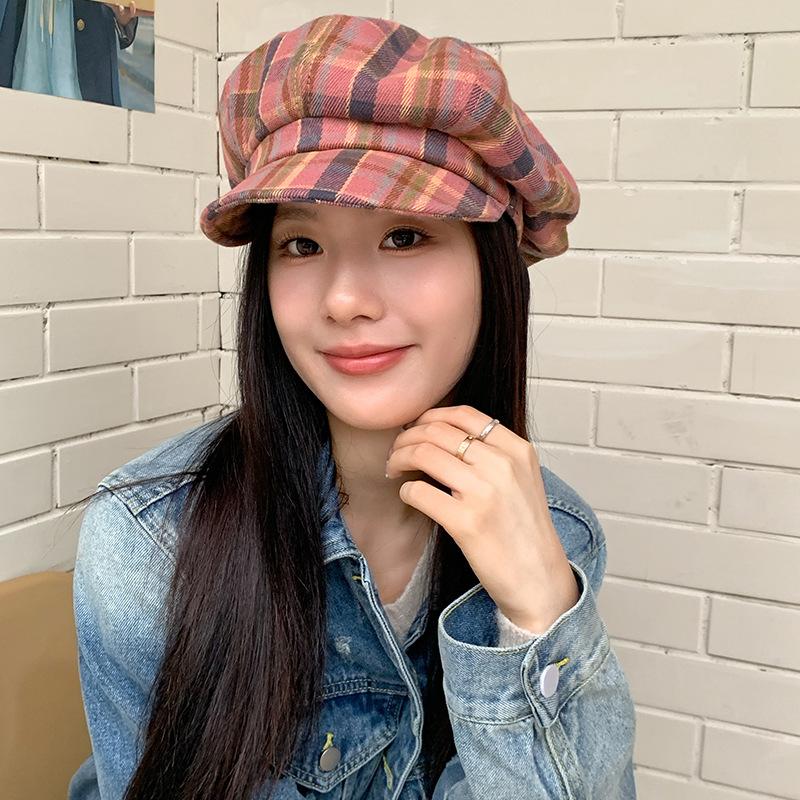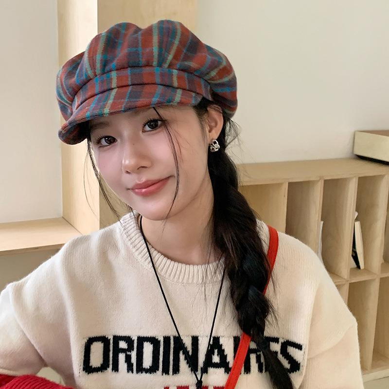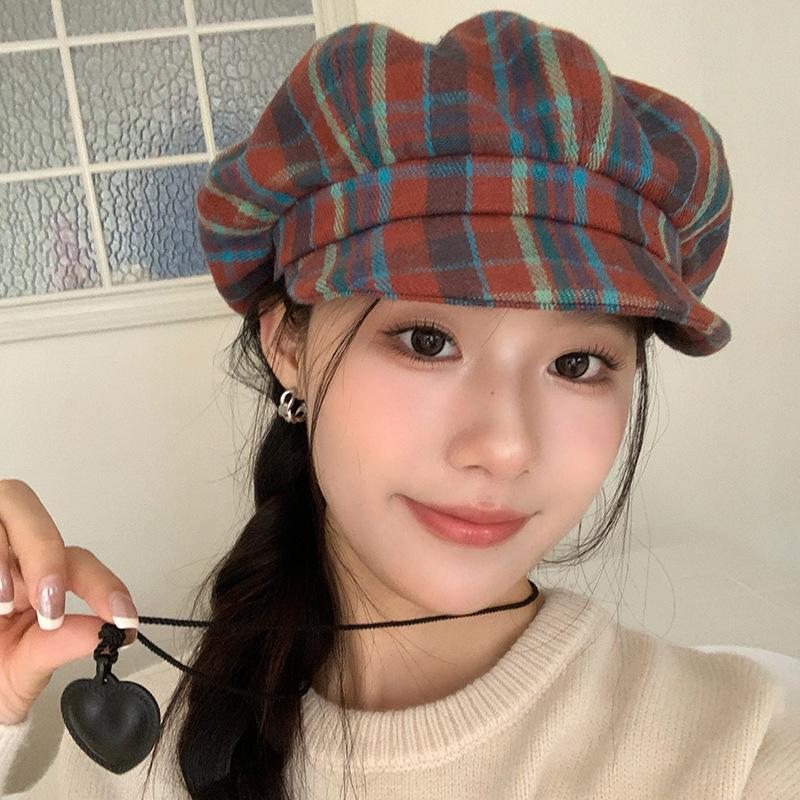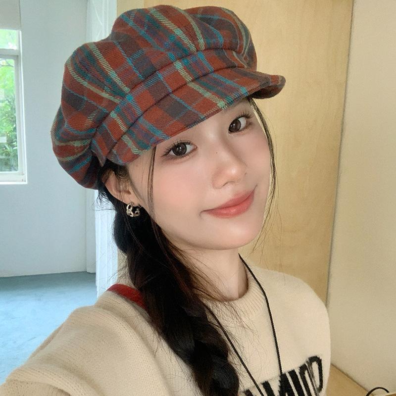 Sombrero octogonal de estilo británico para principios de otoño, nuevo diseño con cuadros de colores, decoración de viaje de invierno para mujer, sombrero informal para estudiantes, tendencia al por mayor