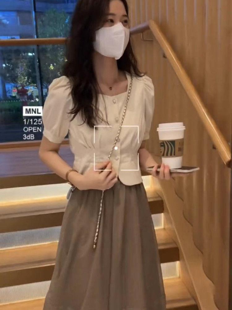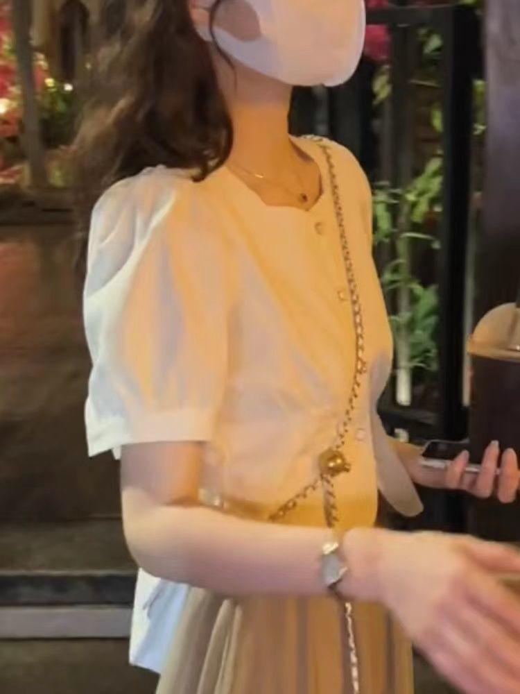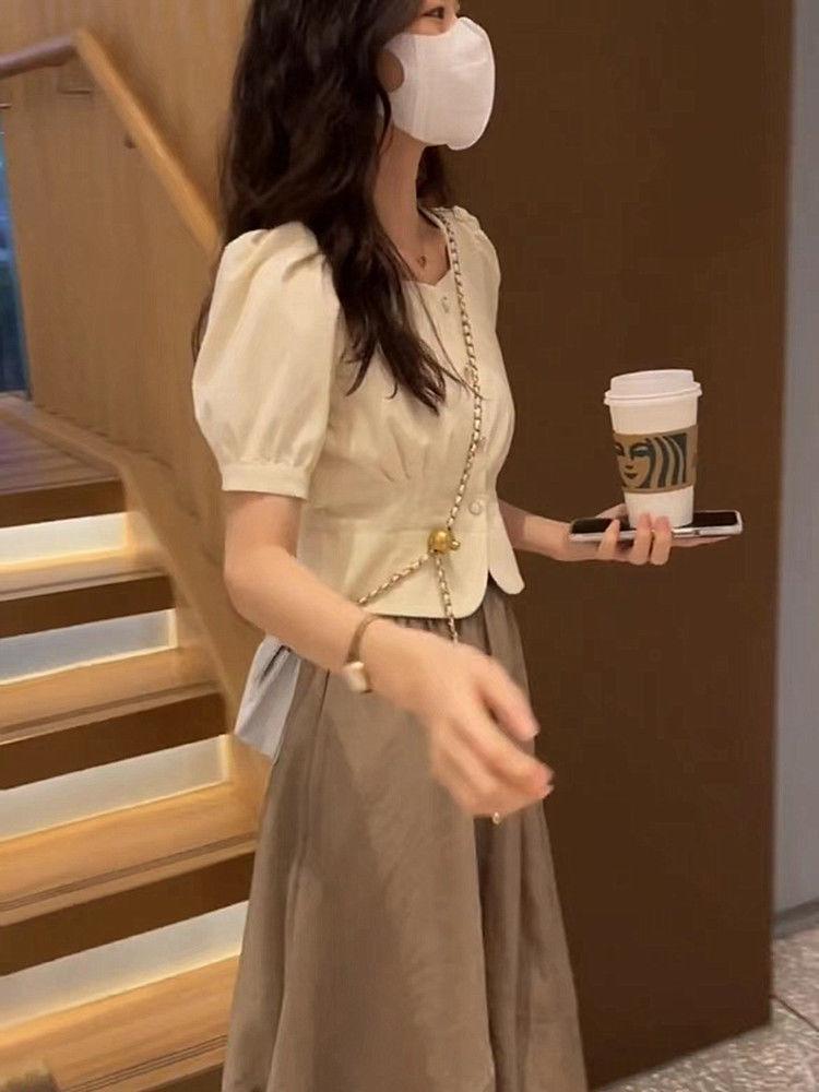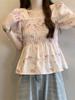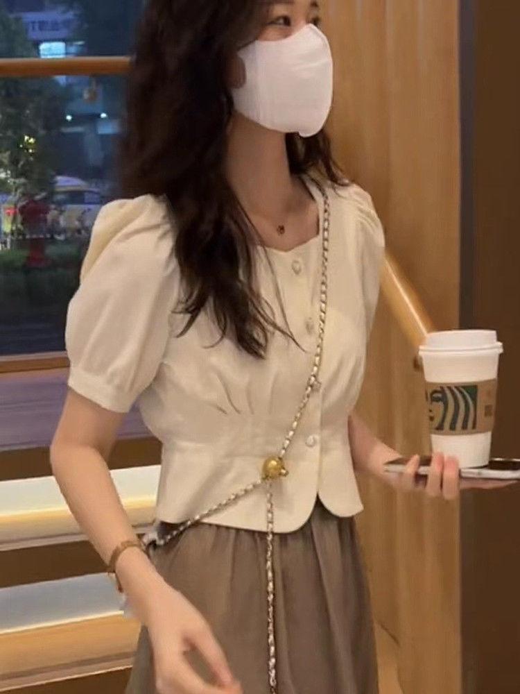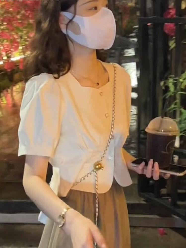 Camisa corta con cuello cuadrado Design Sense Niche para mujer, verano 2024, nueva moda coreana, estilo occidental, antiedad, de manga corta.