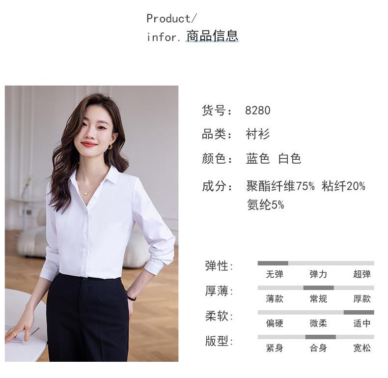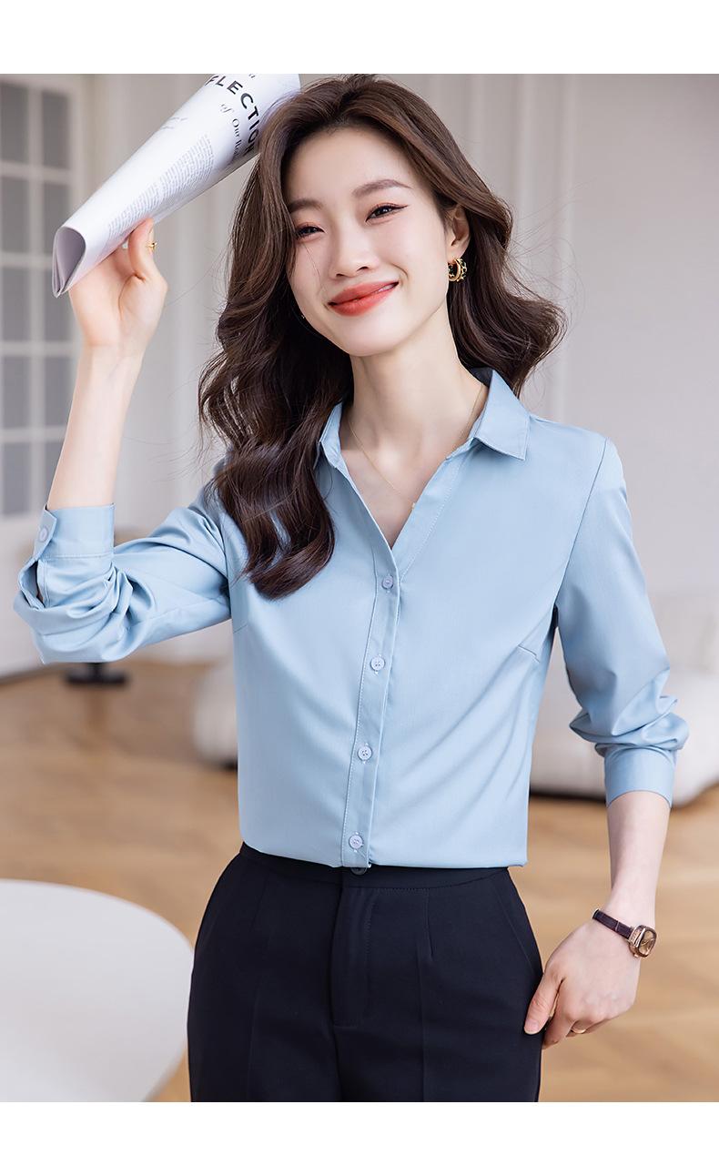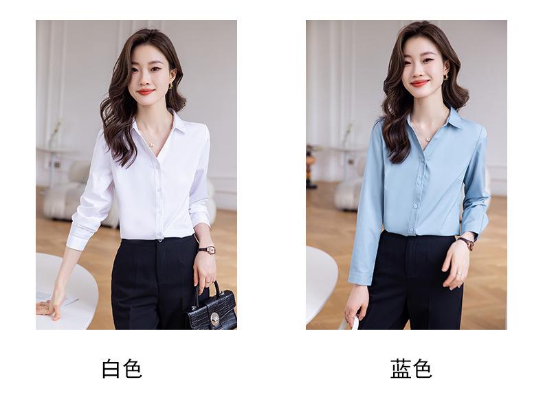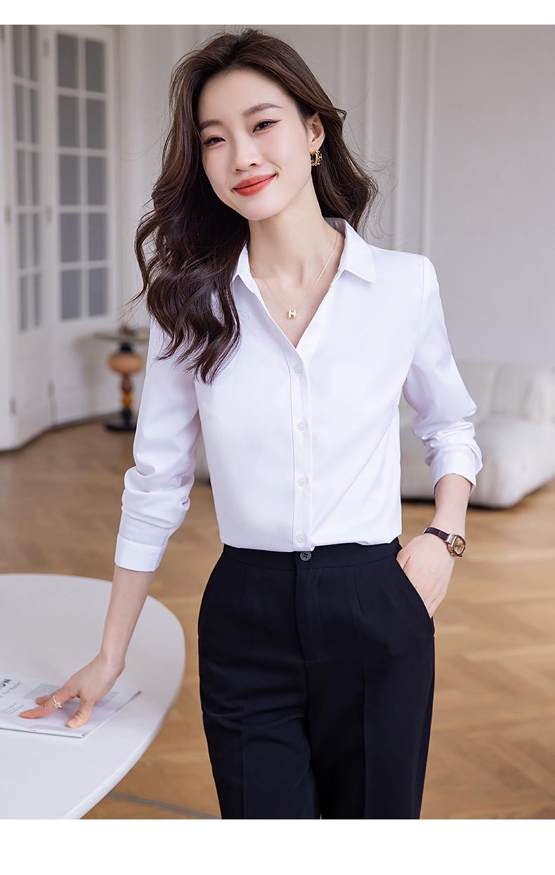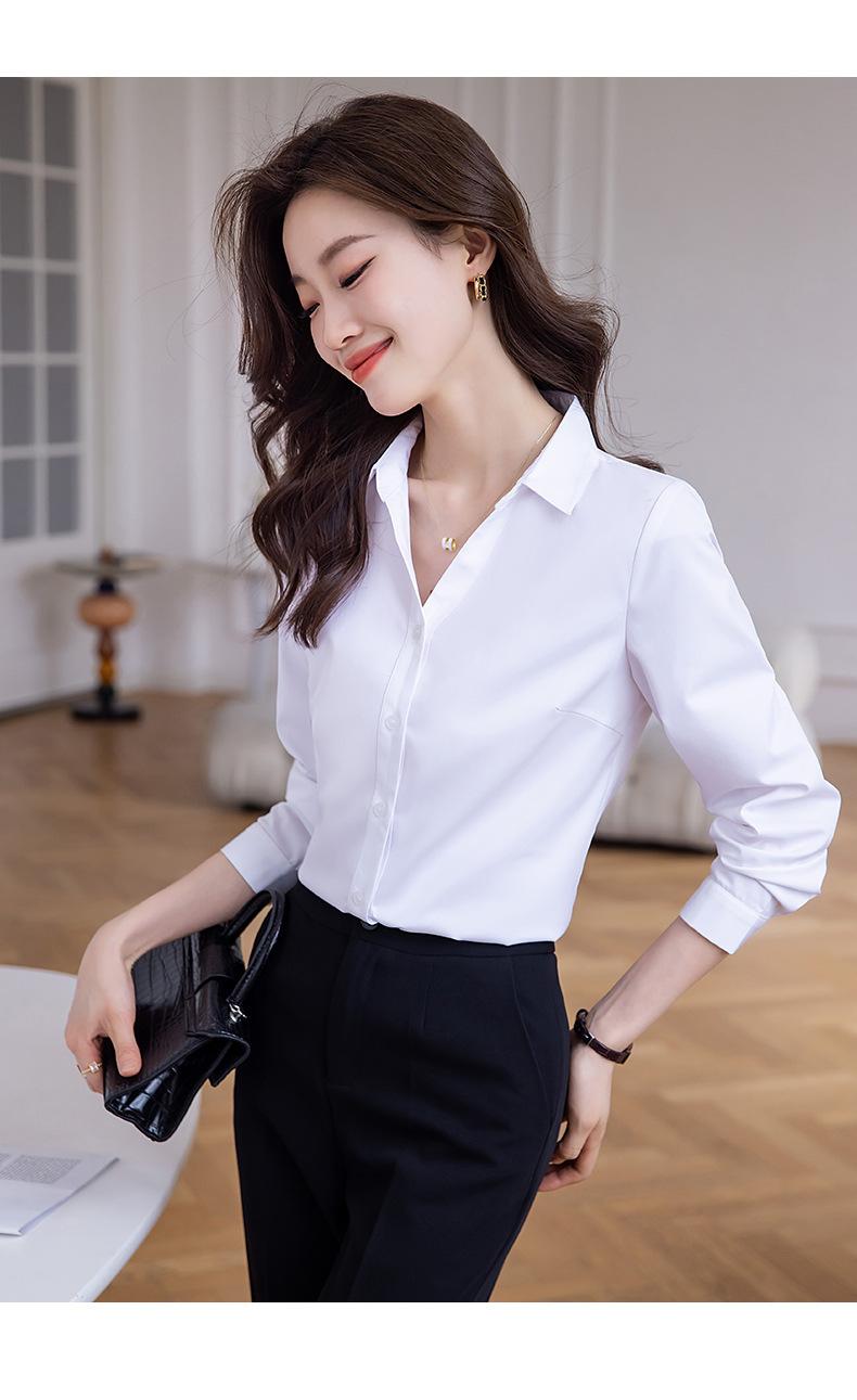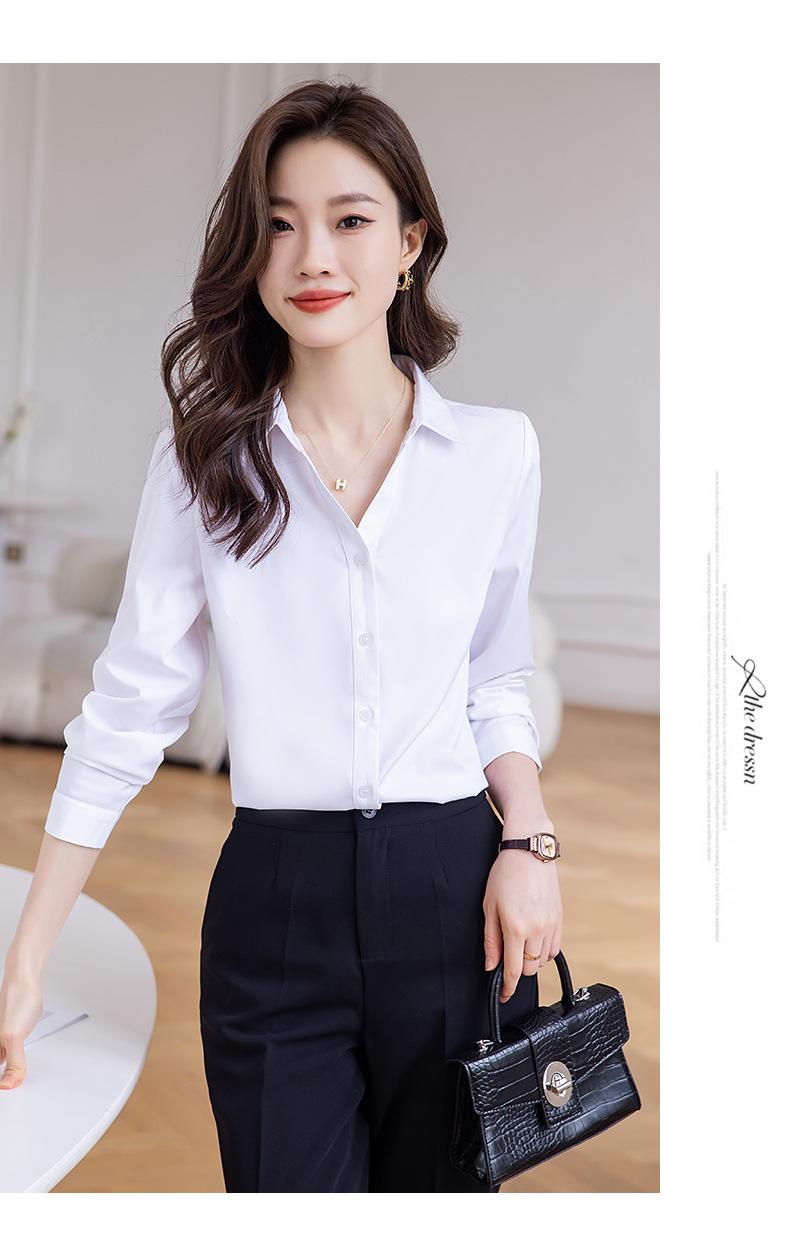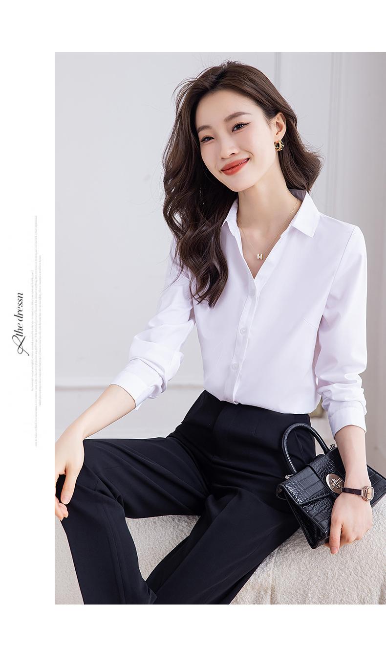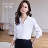 Camisa blanca de manga larga para mujer, primavera y otoño 2023, nueva ropa profesional para mujer, temperamento de moda, camisa con cuello en V, top de viajero