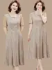 Vestido de verano de estilo nuevo para madres de moda, de manga corta, para mujeres de mediana edad y mayores, con falda de gasa de temperamento noble de verano
