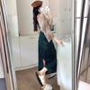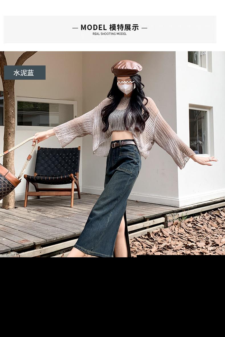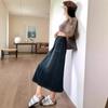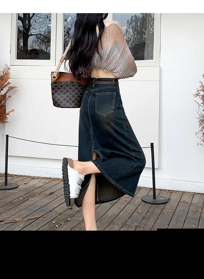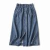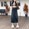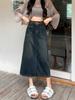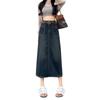 Falda de mezclilla de largo medio rasgada con aspecto adelgazante de cintura alta para mujer Primavera y Verano 2024 Falda Talla Grande Versátil con Abertura Falda Línea A