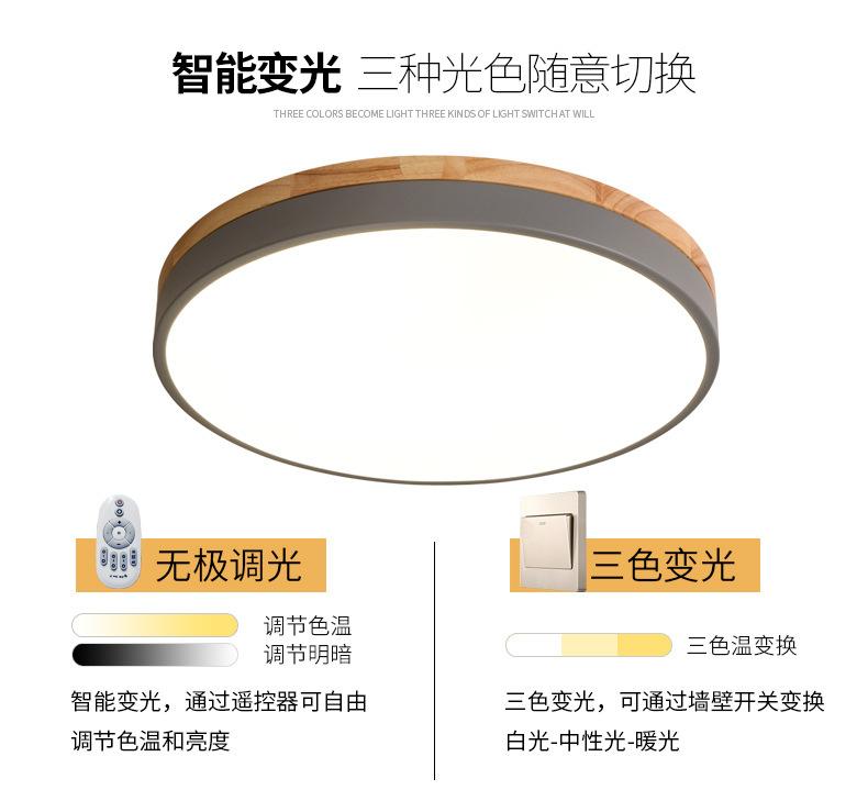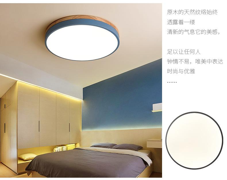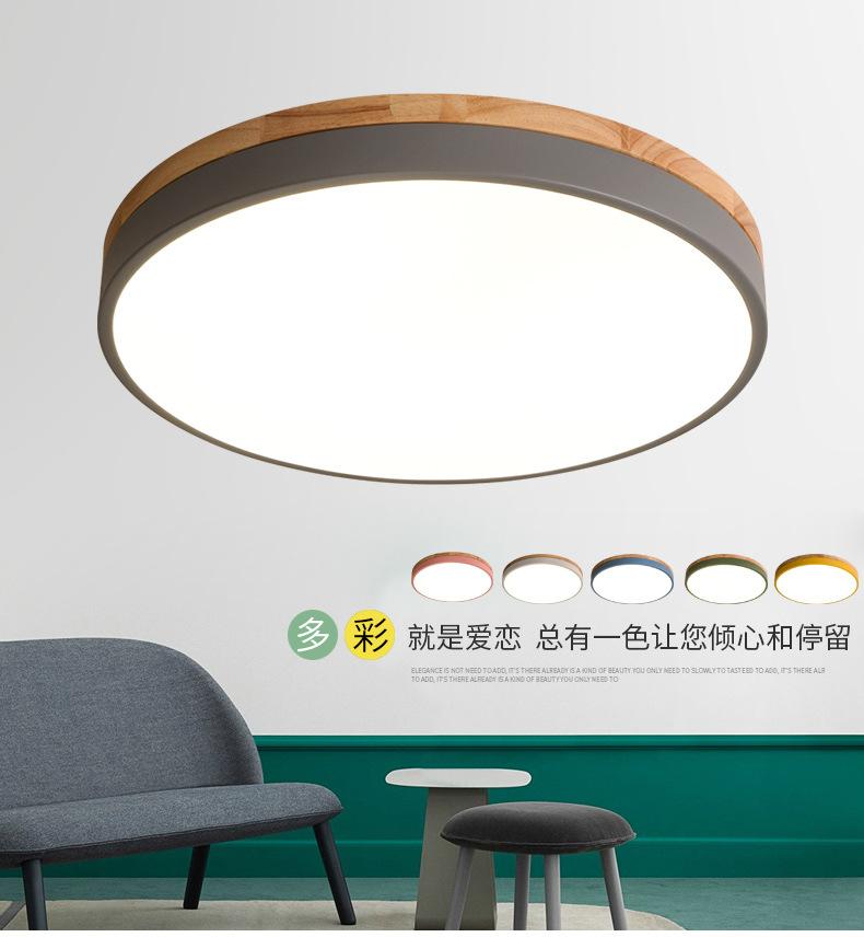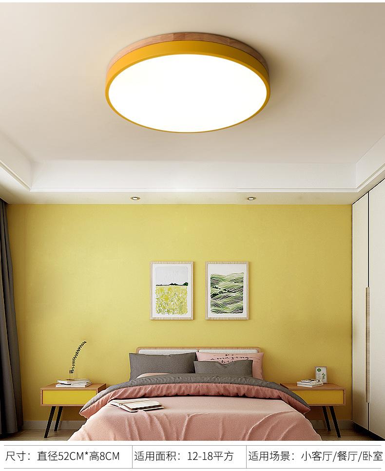 Lámpara de dormitorio nórdica de madera macaron, lámpara de techo LED moderna minimalista, lámpara redonda creativa para habitación, sala de estar, estudio