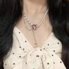 Gargantilla elegante de cuero estilo francés con perlas rosas, diseño de nicho, collar de alta gama para mujer, nuevo estilo 2024