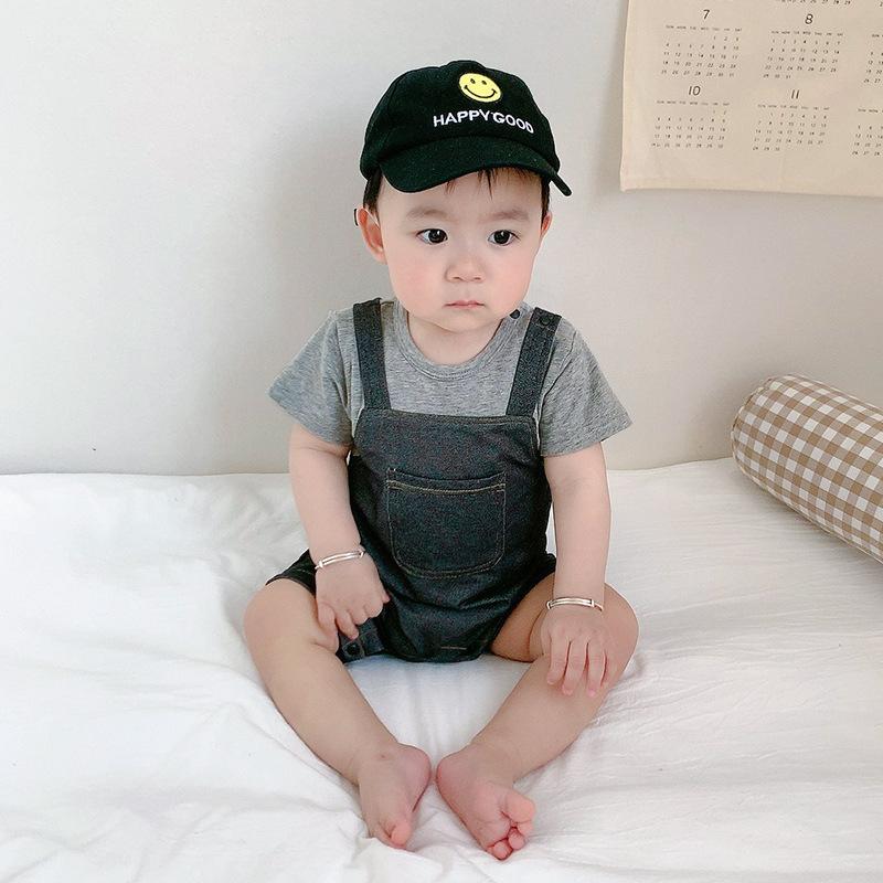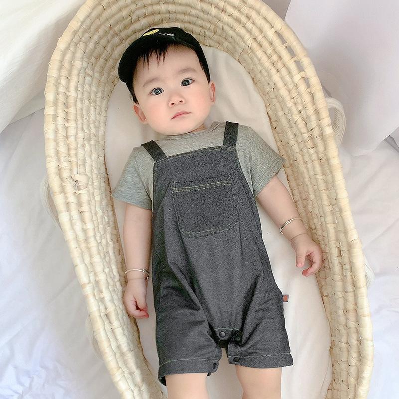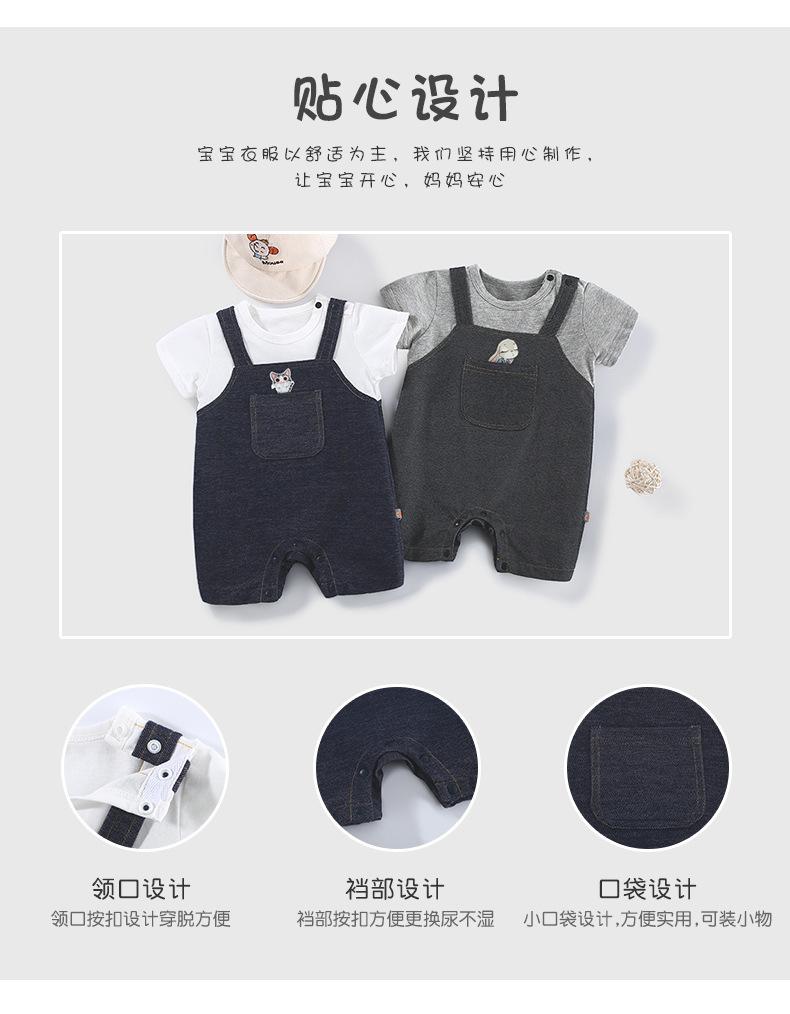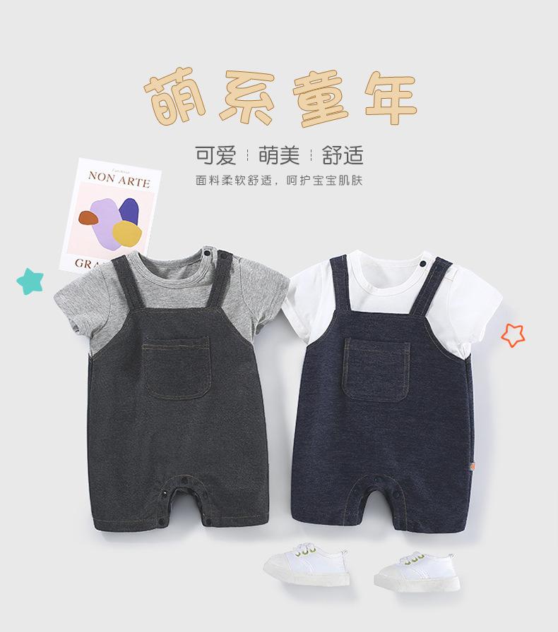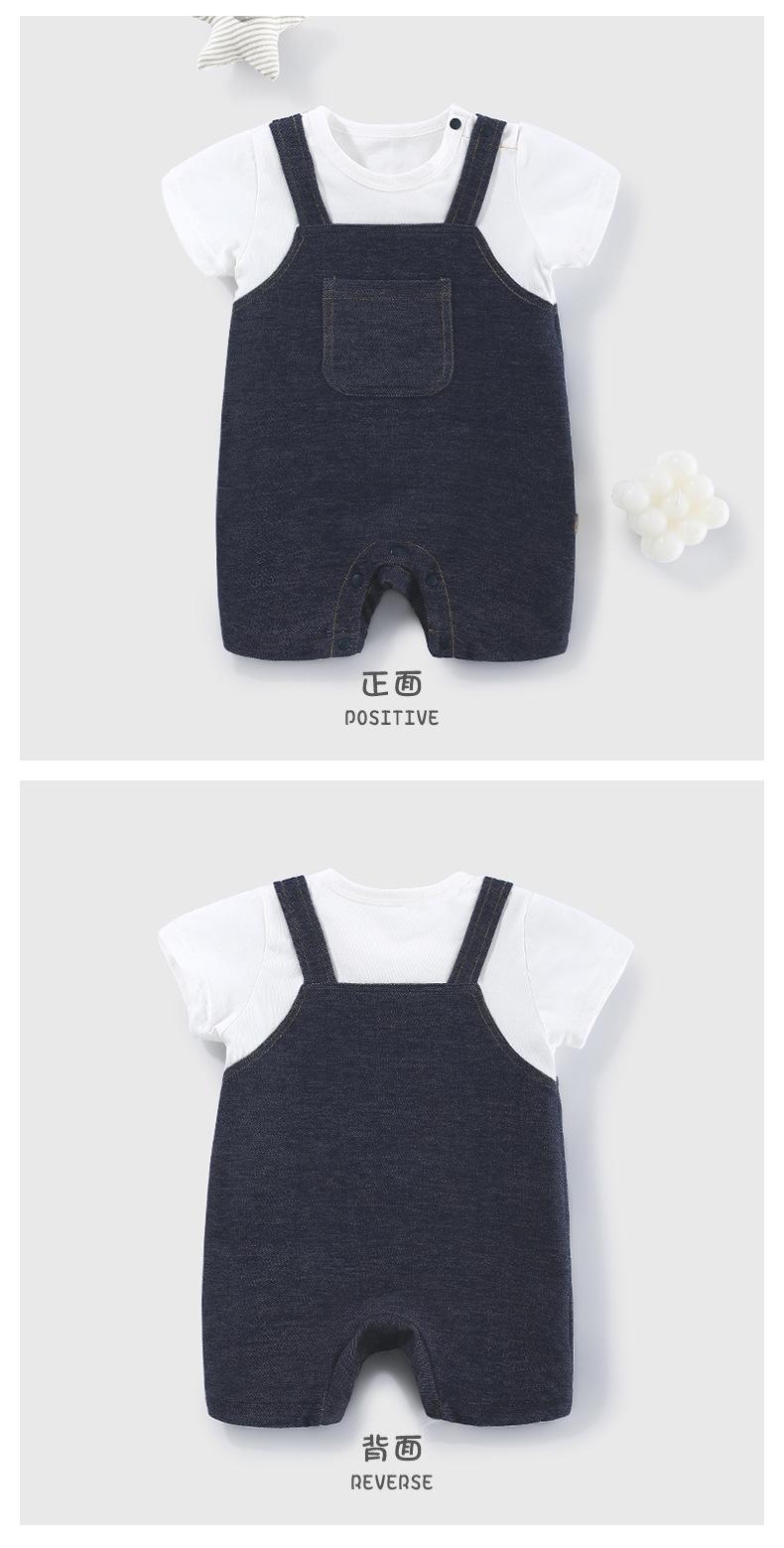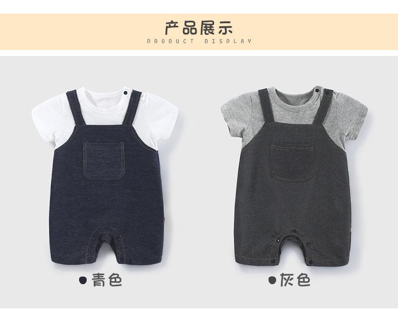 Ropa de bebé de verano nueva delgada para hombre tesoro tesoro de mujer correa falsa de dos piezas liebre recién nacido mono simple