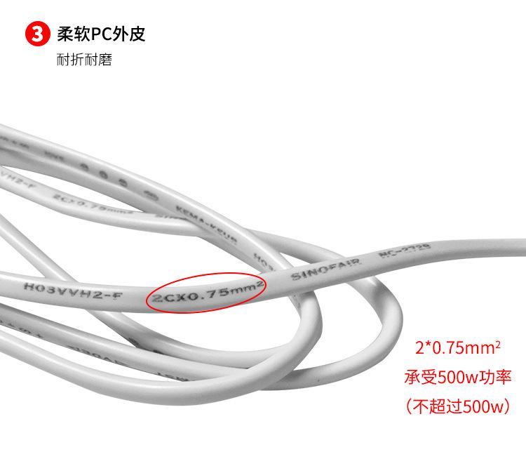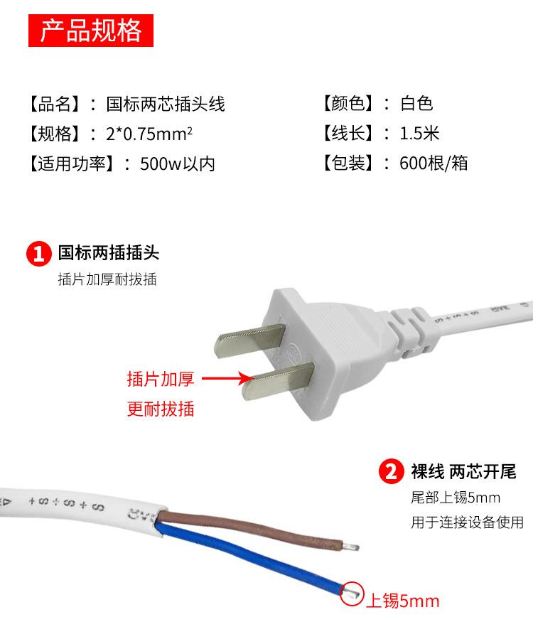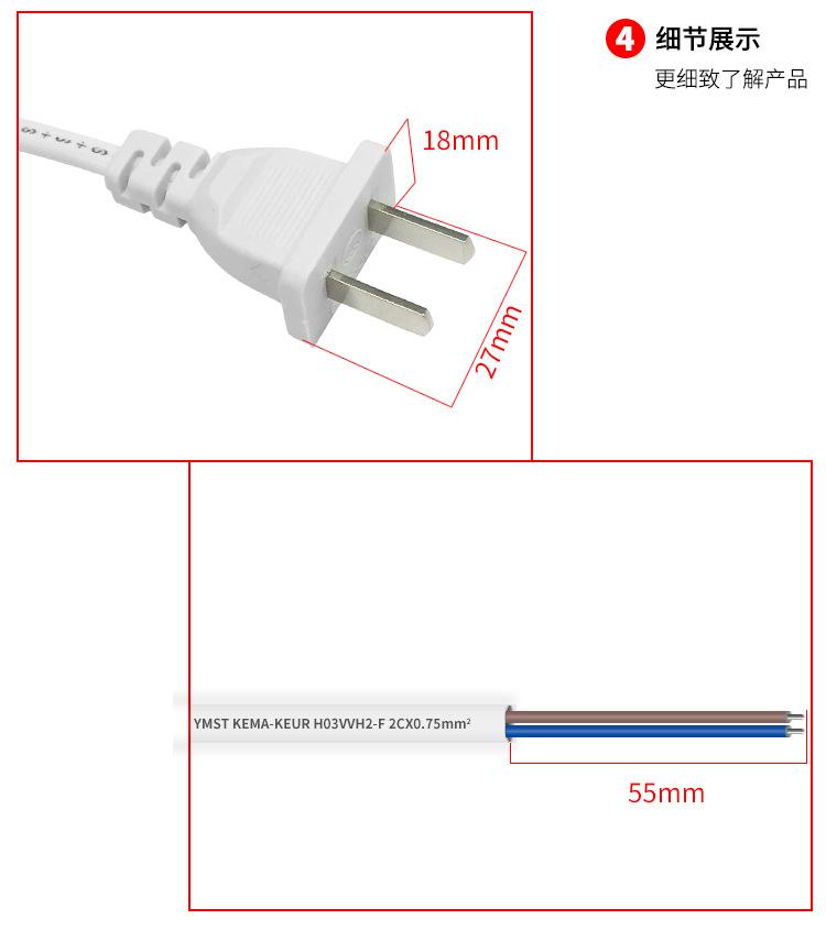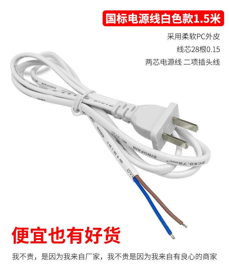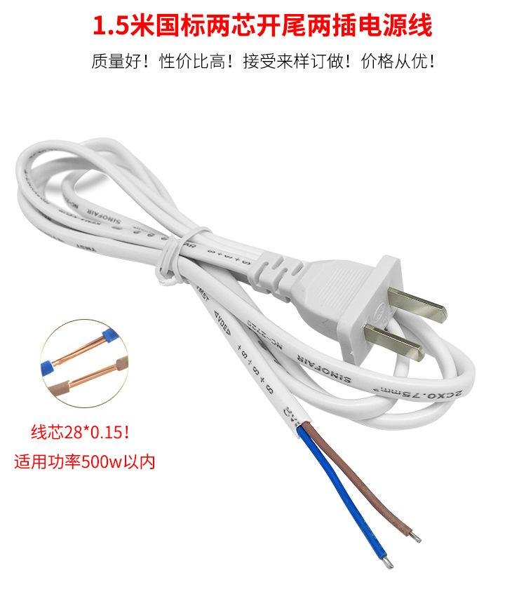 Cable de alimentación estándar nacional con enchufe de 2 núcleos, 0,5/0,75 metros cuadrados, cable de alimentación de dos núcleos, dos enchufes, dos orificios