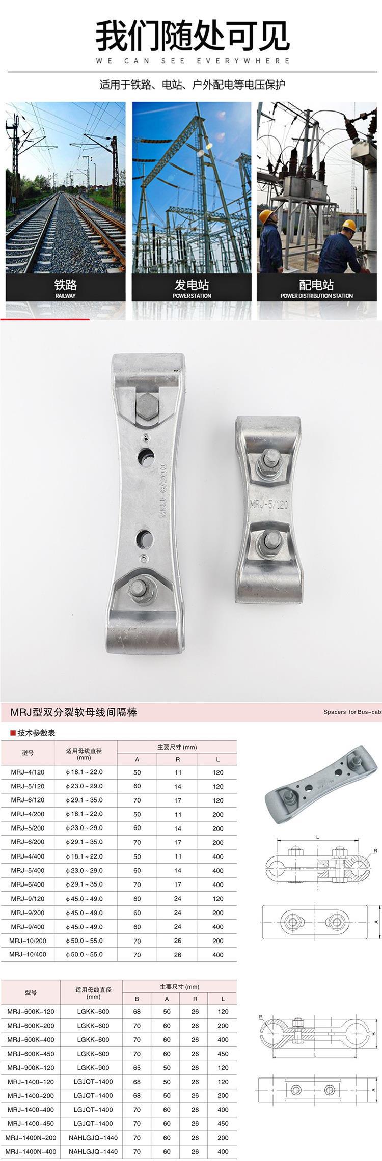 Espaciador de barra colectora blanda de doble división MRJ-4-5-6/120 Abrazadera de protección de conductor de accesorio de aleación de aluminio