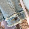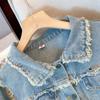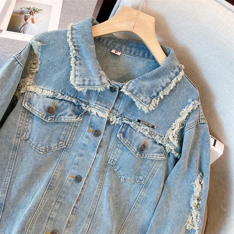 Otoño 2024 Nuevo Estilo Hong Kong Retro Crudo Roto Chaqueta de Mezclilla para Mujer Suelta Versátil Chaqueta Top Ins Tendencia