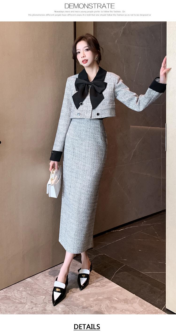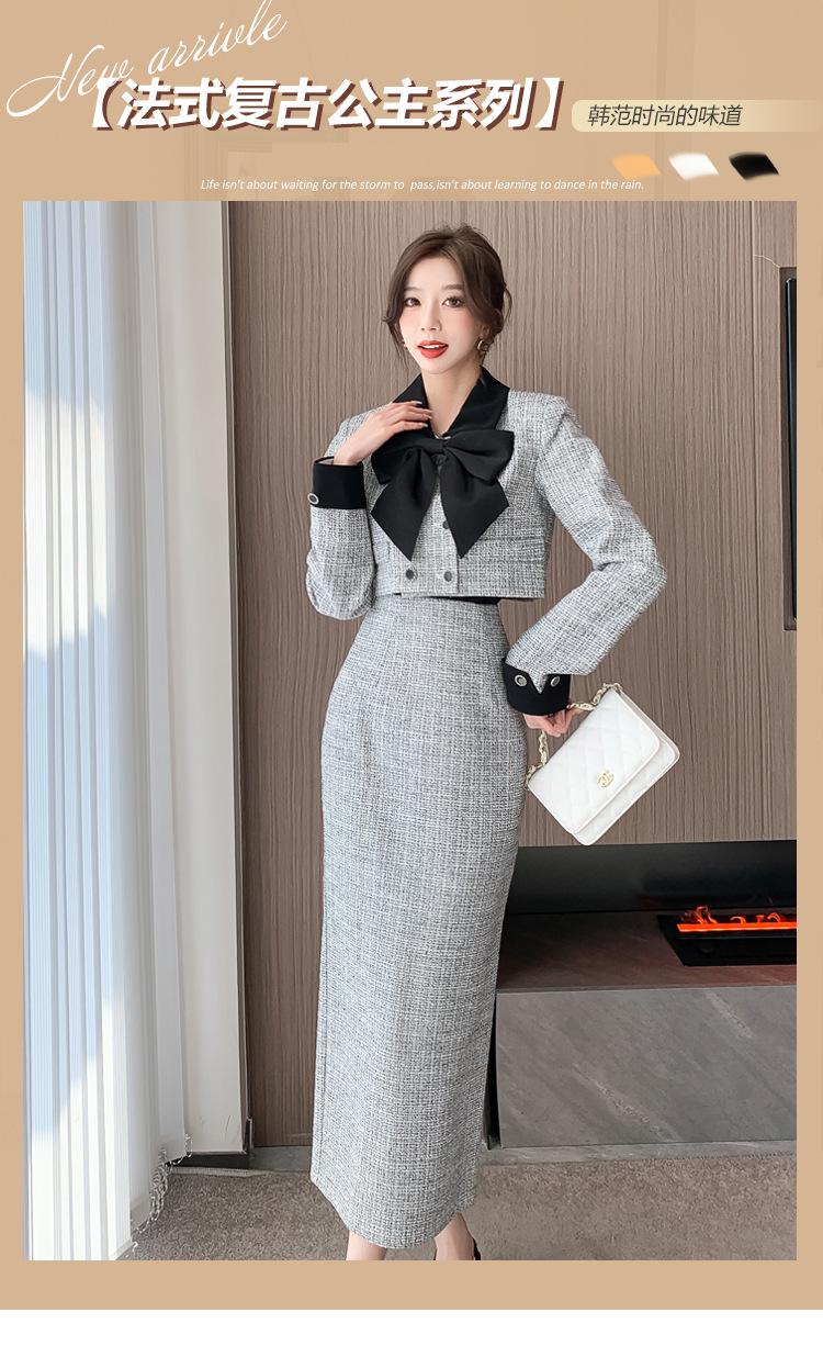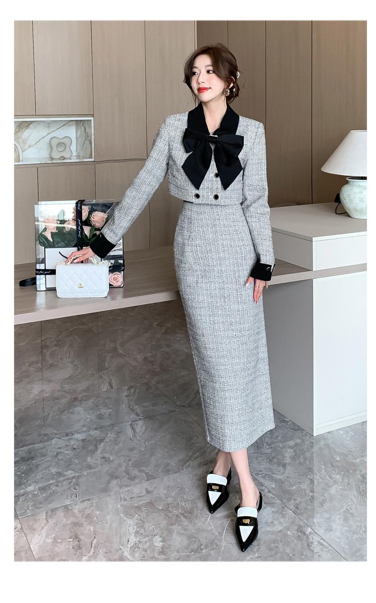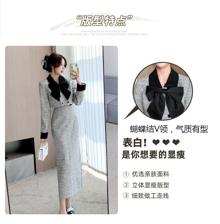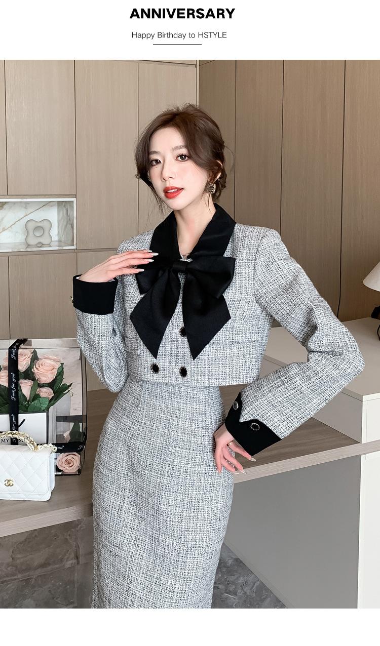 Traje de estilo pequeño y fragante de tiro real, otoño e invierno 2025, nuevo conjunto de dos piezas de tweed con abrigo corto y falda con lazo