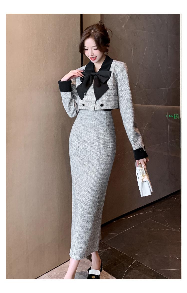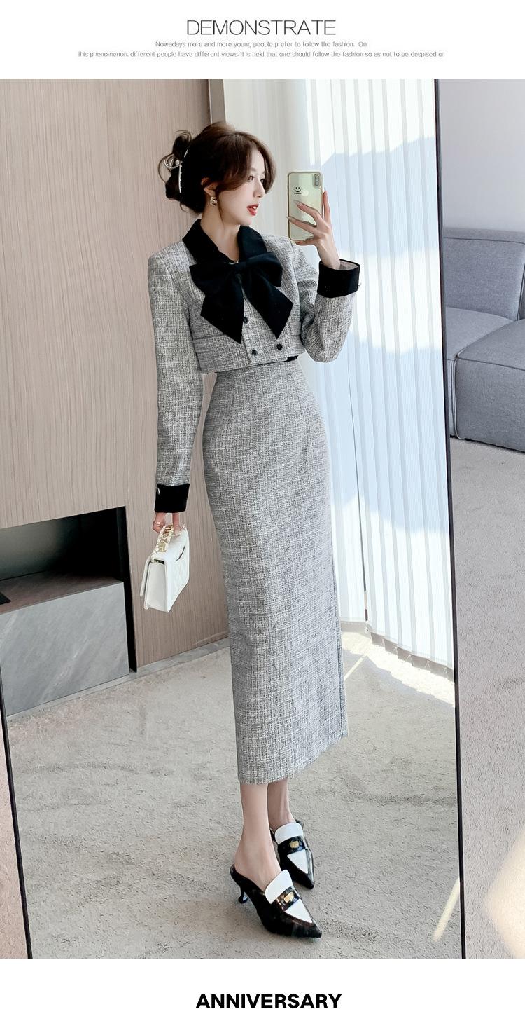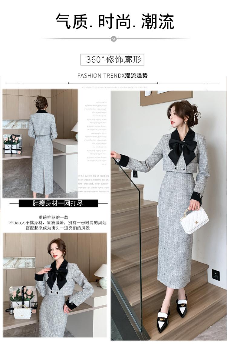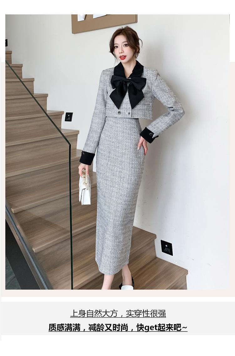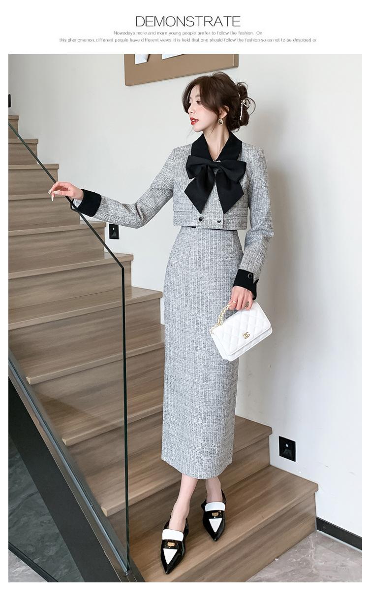 Traje de estilo pequeño y fragante de tiro real, otoño e invierno 2025, nuevo conjunto de dos piezas de tweed con abrigo corto y falda con lazo