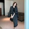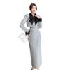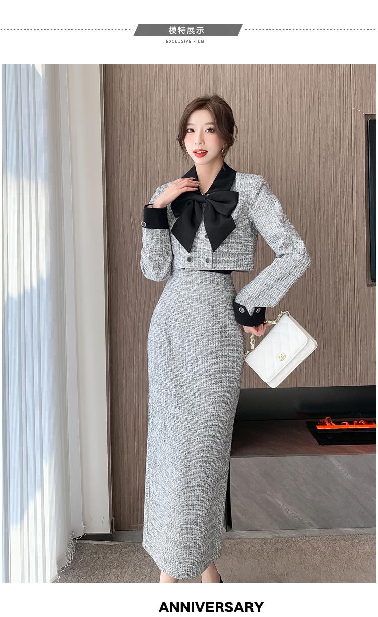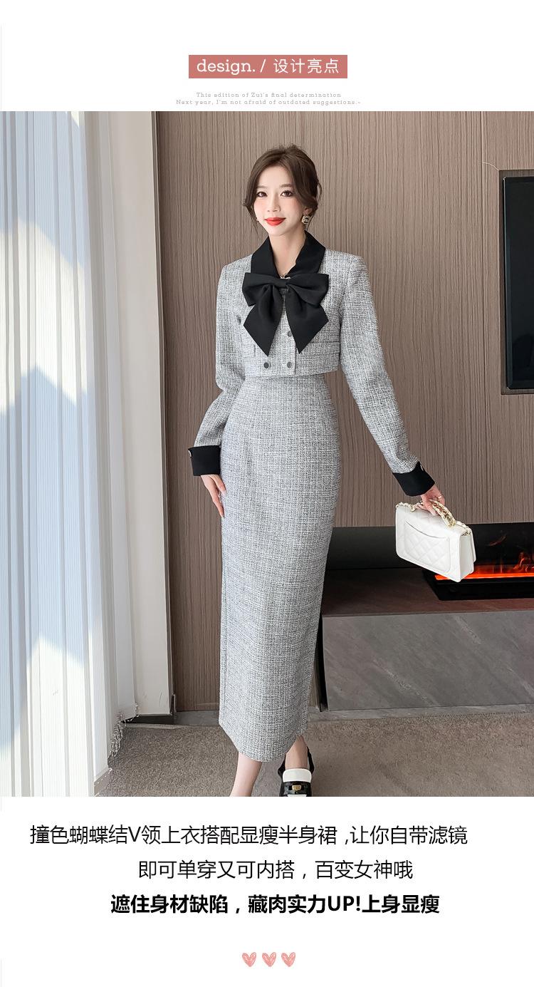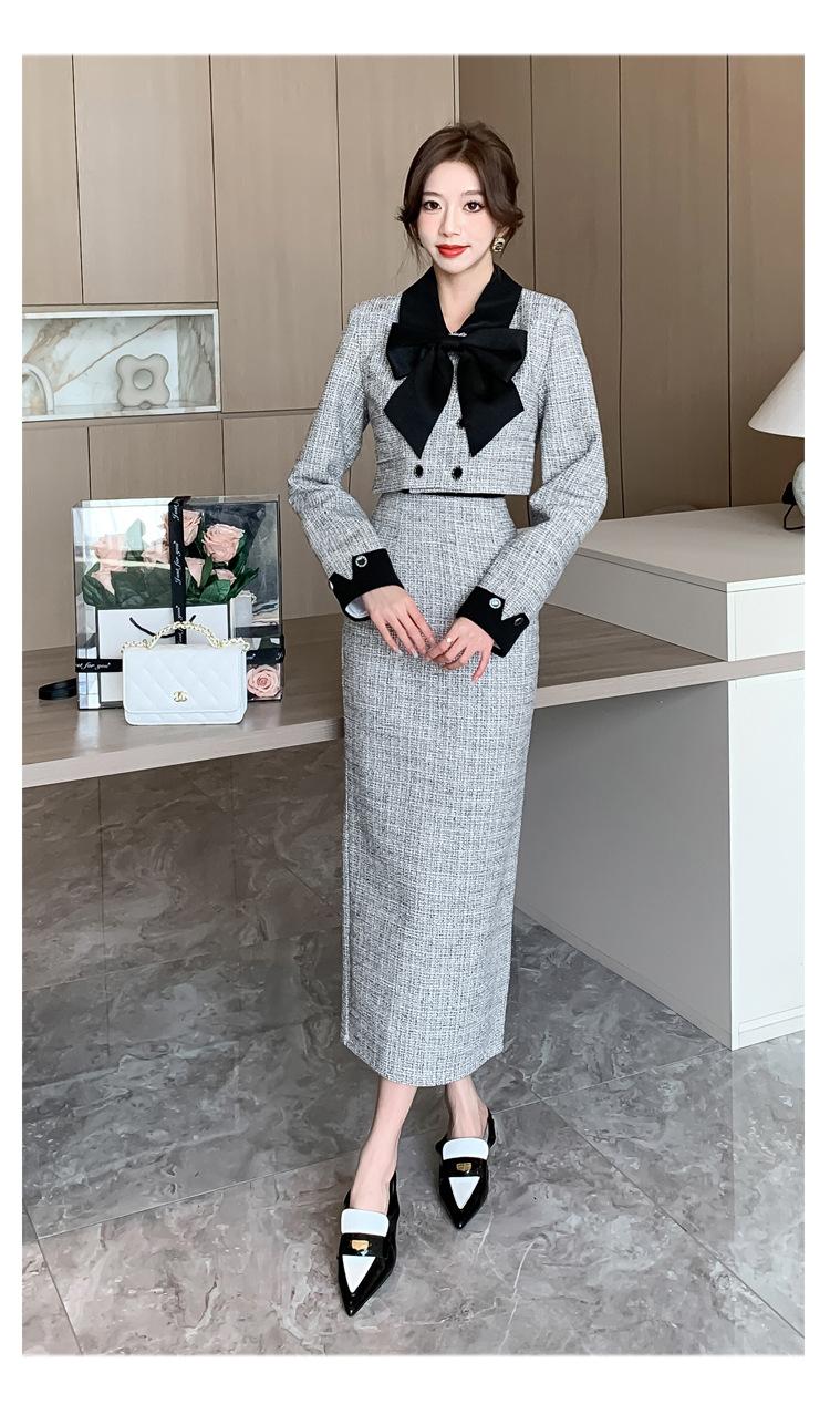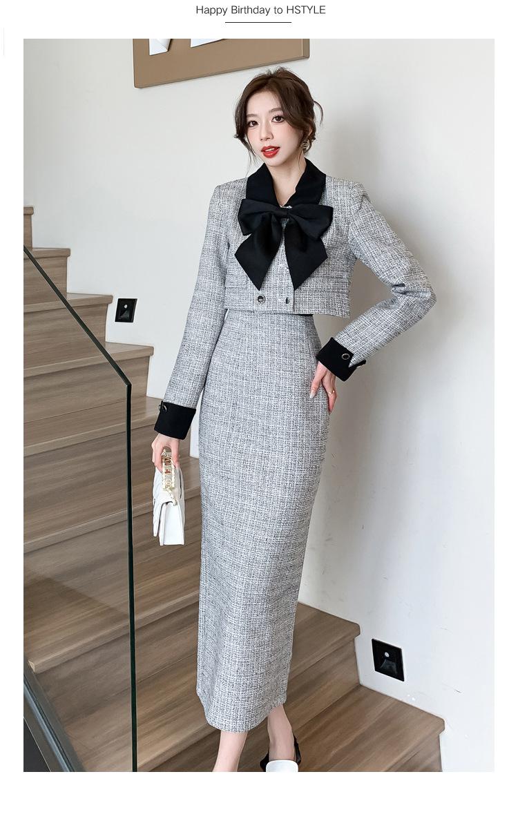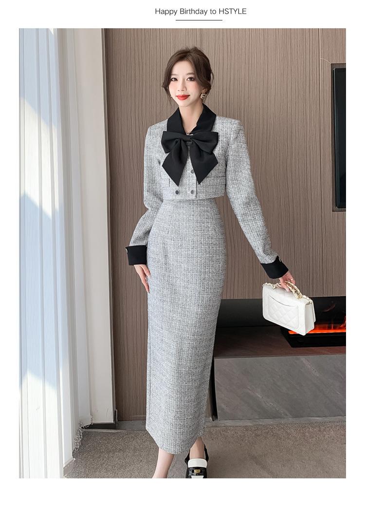 Traje de estilo pequeño y fragante de tiro real, otoño e invierno 2025, nuevo conjunto de dos piezas de tweed con abrigo corto y falda con lazo