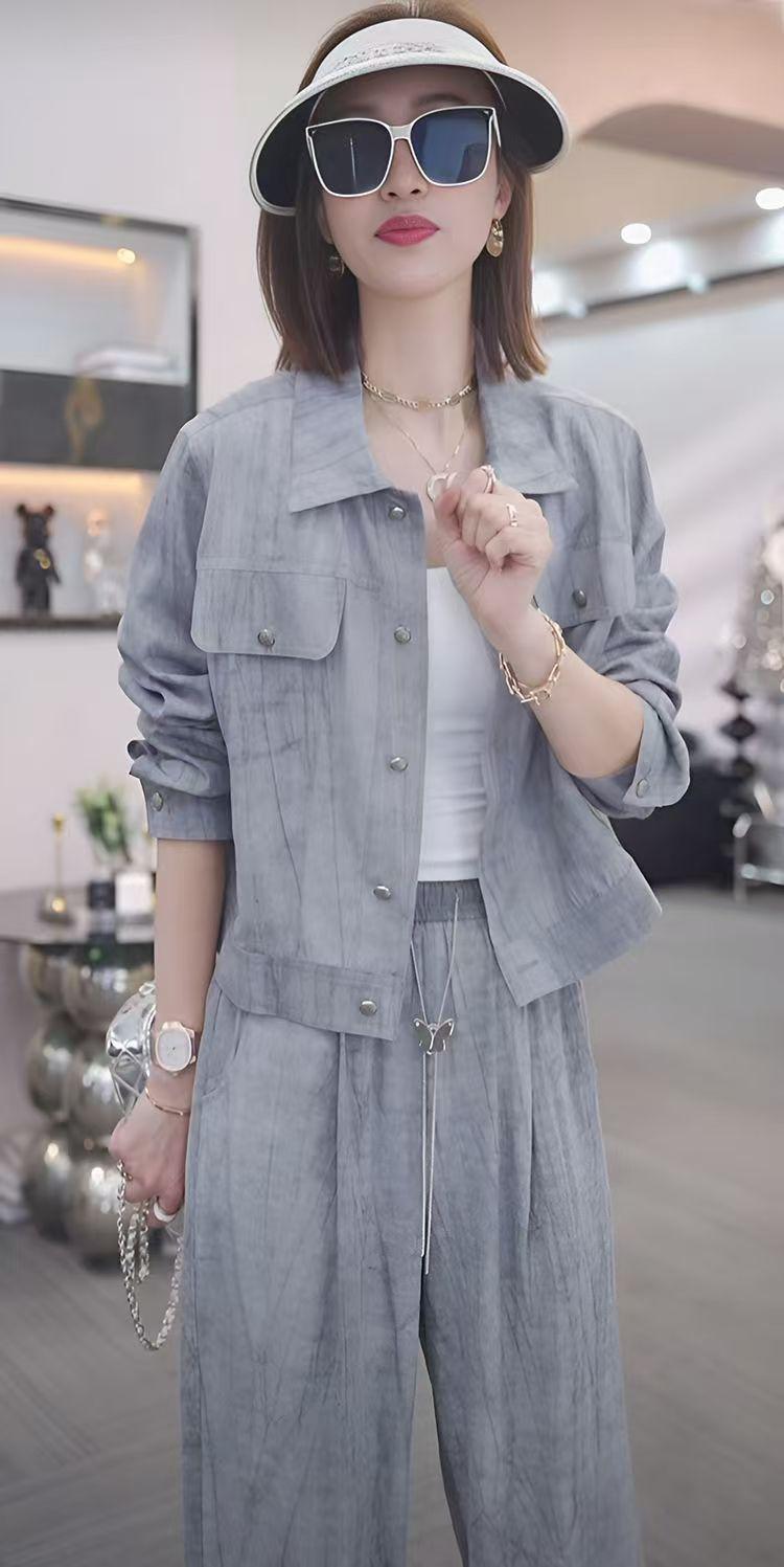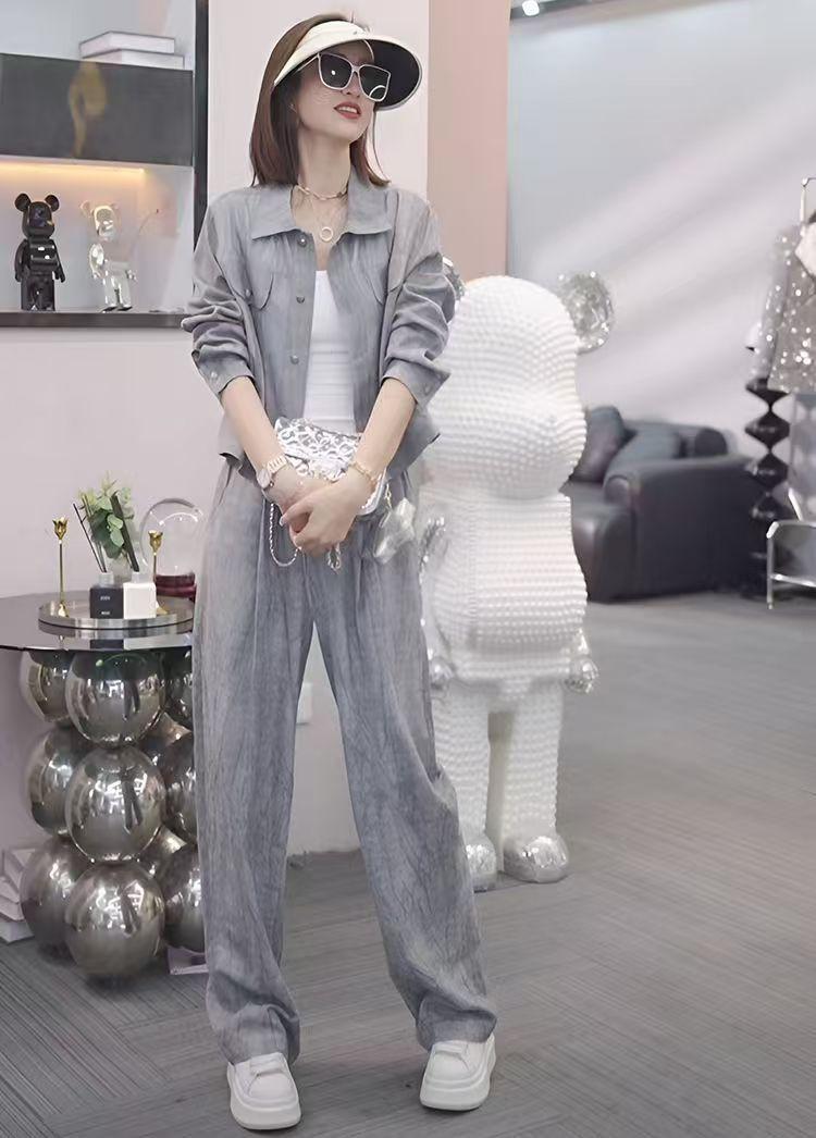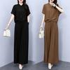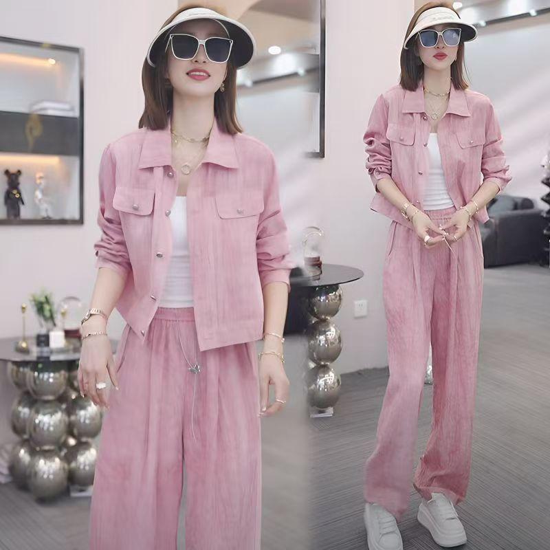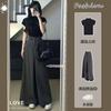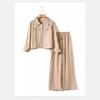 Traje Casual de Moda Otoño 2024 para Mujer, Slim Holgado con Solapa, Top, Pantalones de Pierna Ancha de Cintura Alta, Conjunto de Dos Piezas para Mujer