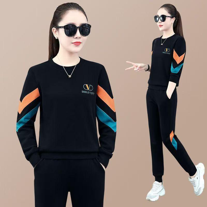 Traje Deportivo para Mujer Primavera y Otoño 2024 Nueva Moda Talla Grande Holgado Sudadera para Correr Casual Look Adelgazante Conjunto de Dos Piezas Moderno