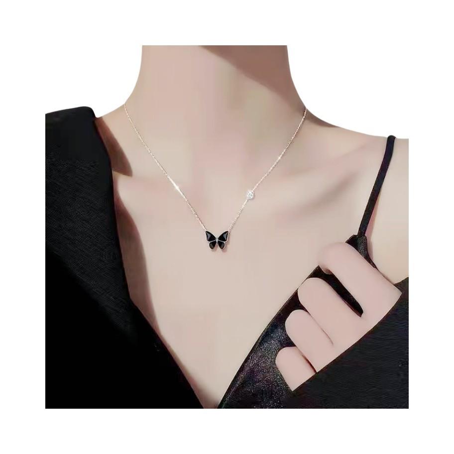 Collar de Mariposa que Cambia de Color Sensible al Calor de Nuevo Estilo para Mujer, Diseño de Nicho, Colgante de Mariposa con Sentido, Elegante Lujo Ligero, Cadena de Clavícula Femenina Versátil