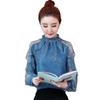 Camisa con base de encaje para mujer, primavera y otoño 2024, nueva moda, camisa de gasa, blusa de estilo occidental de Super Fairy, camisa pequeña de primavera