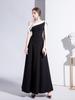 Vestido de Noche Negro para Mujer 2025 Nueva Moda Banquete Elegante Un Hombro Vestido para Actuación de Coro Falda Larga para Mujer