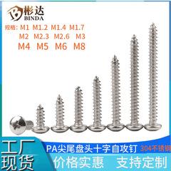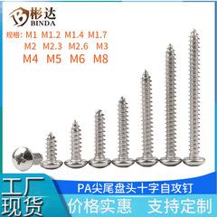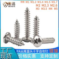 Acero inoxidable PA304 M1 cabeza redonda M1.2 cola puntiaguda Tornillos M1.4 Tornillos autorroscantes de cabeza plana cruzada M1.7M2M3