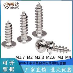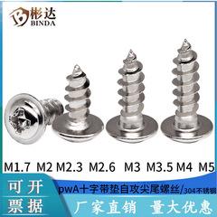 Tornillo autorroscante de acero inoxidable PWA con ranura en cruz y arandela M1.7, cabeza plana 304M2.3, cabeza redonda M2.6, tornillo M2