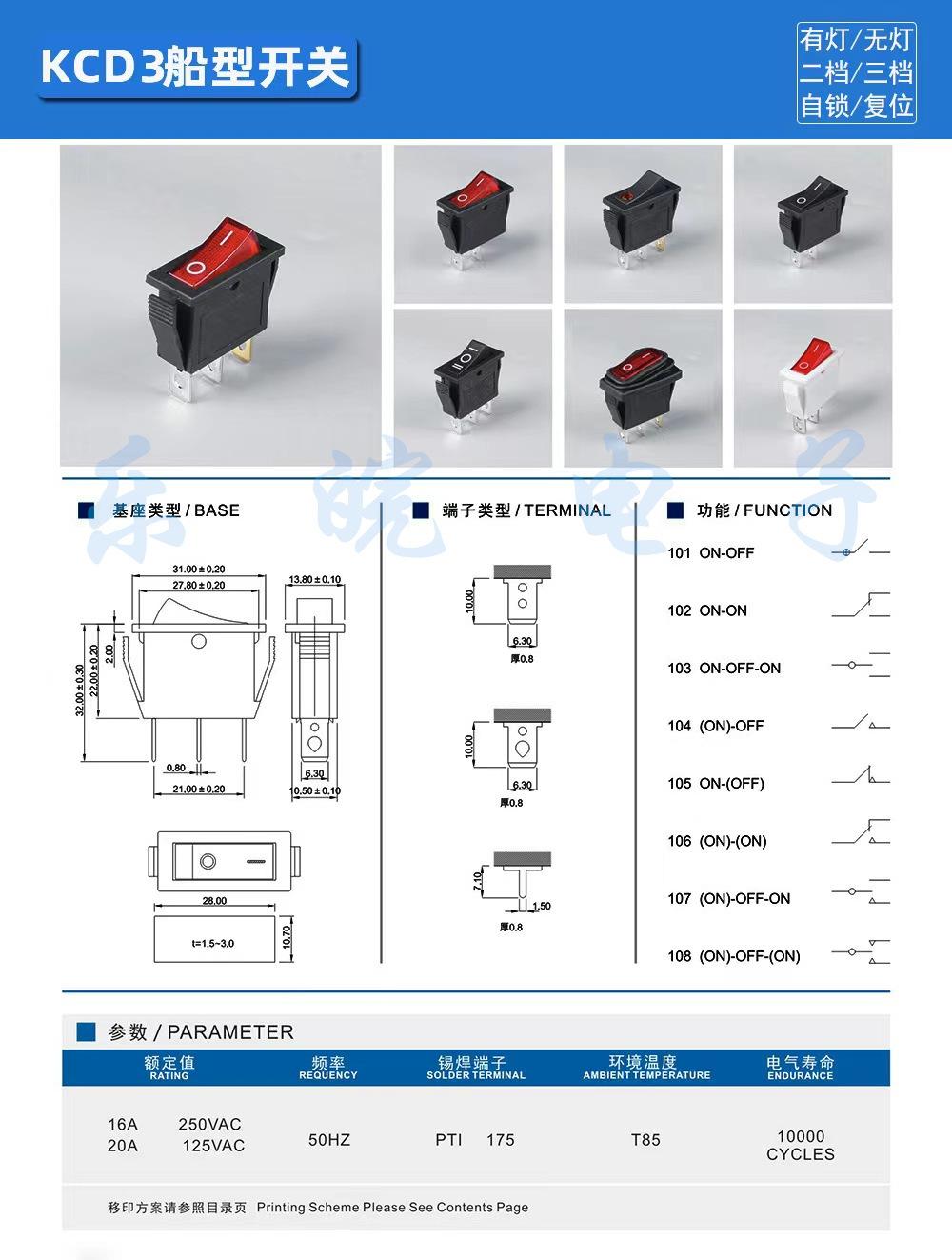 Interruptor basculante transparente de dos pines Kcd3 31*14mm Cubierta transparente amarilla Interruptor de barco de 2 pines y 2 velocidades