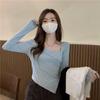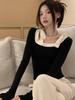 Camiseta de manga larga con cuello cuadrado estilo americano BM para mujer, estilo Spice Girl, de corte ajustado y combinable, de color liso, moderna.
