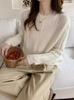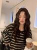 Suéter de cuello redondo holgado, transpirable, de punto nuevo, de estilo europeo y americano, con diseño de nicho de color en contraste de rayas blancas y negras para otoño e invierno.