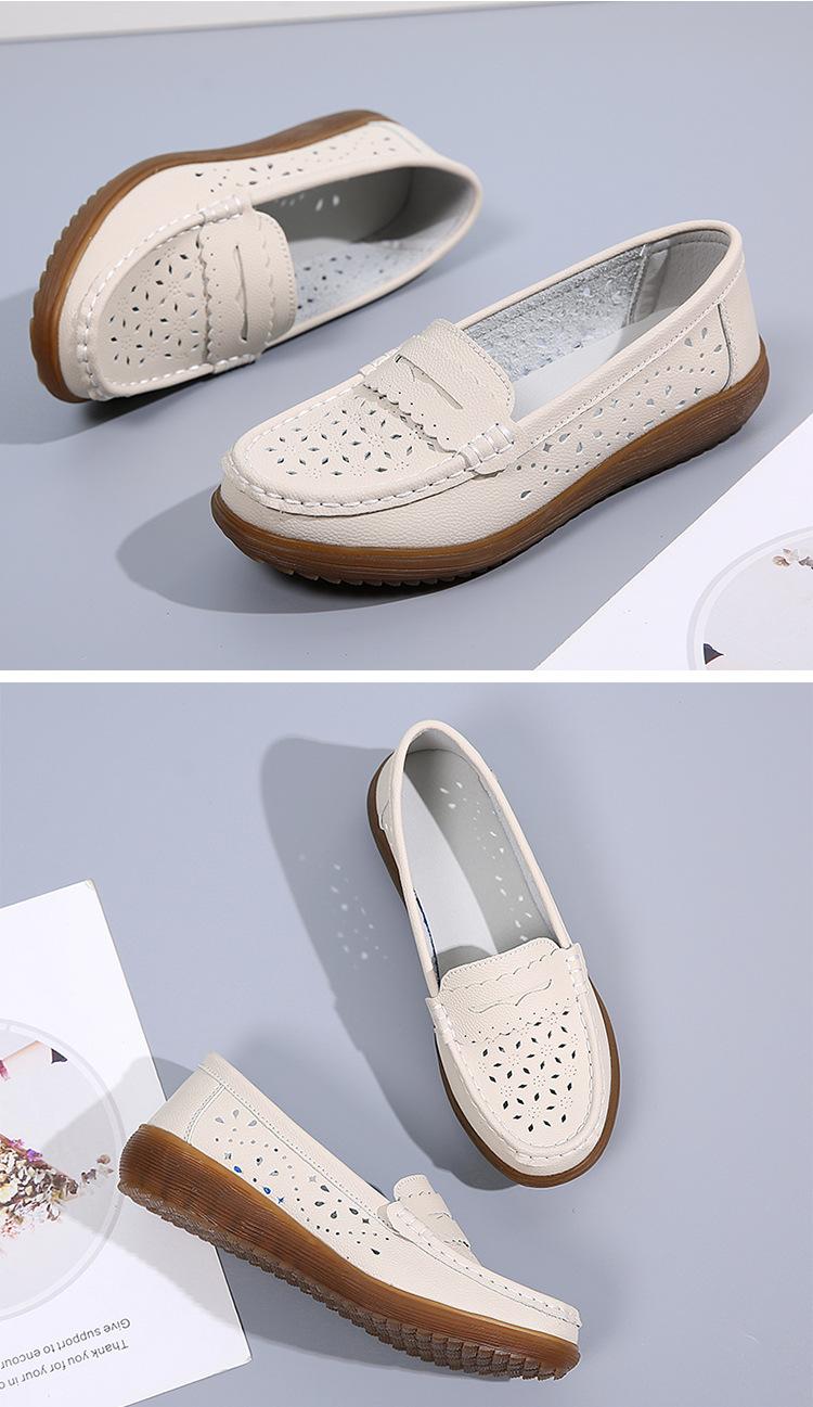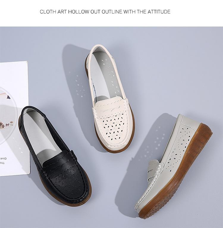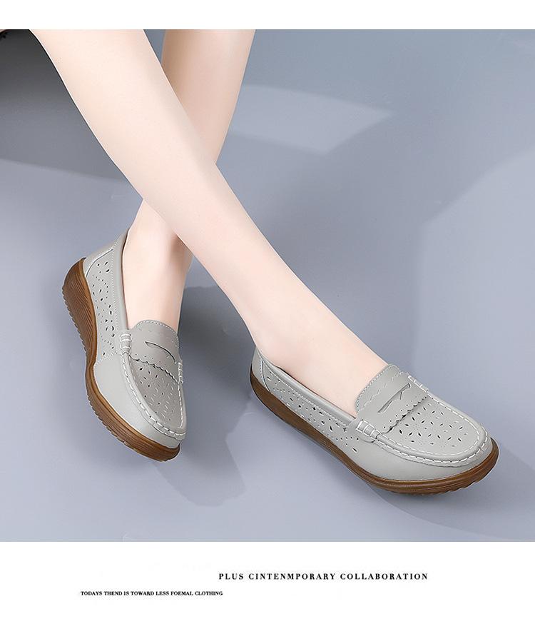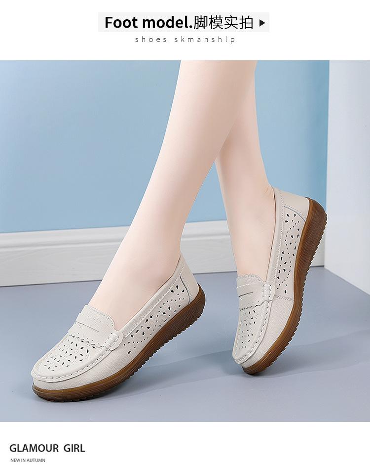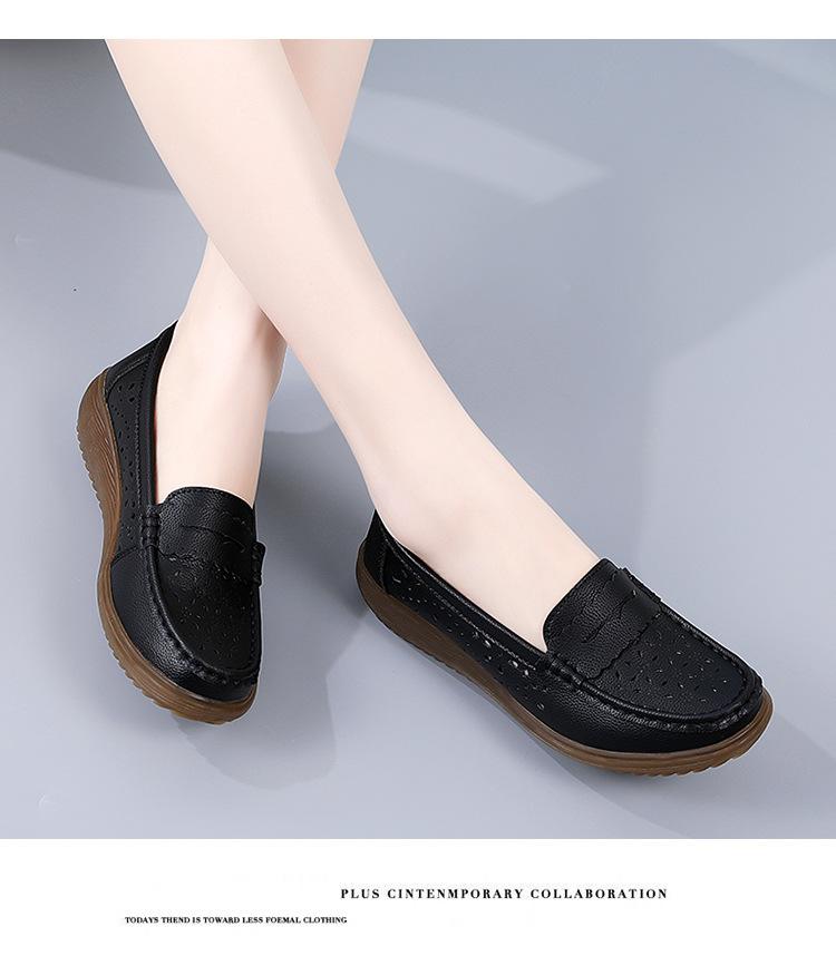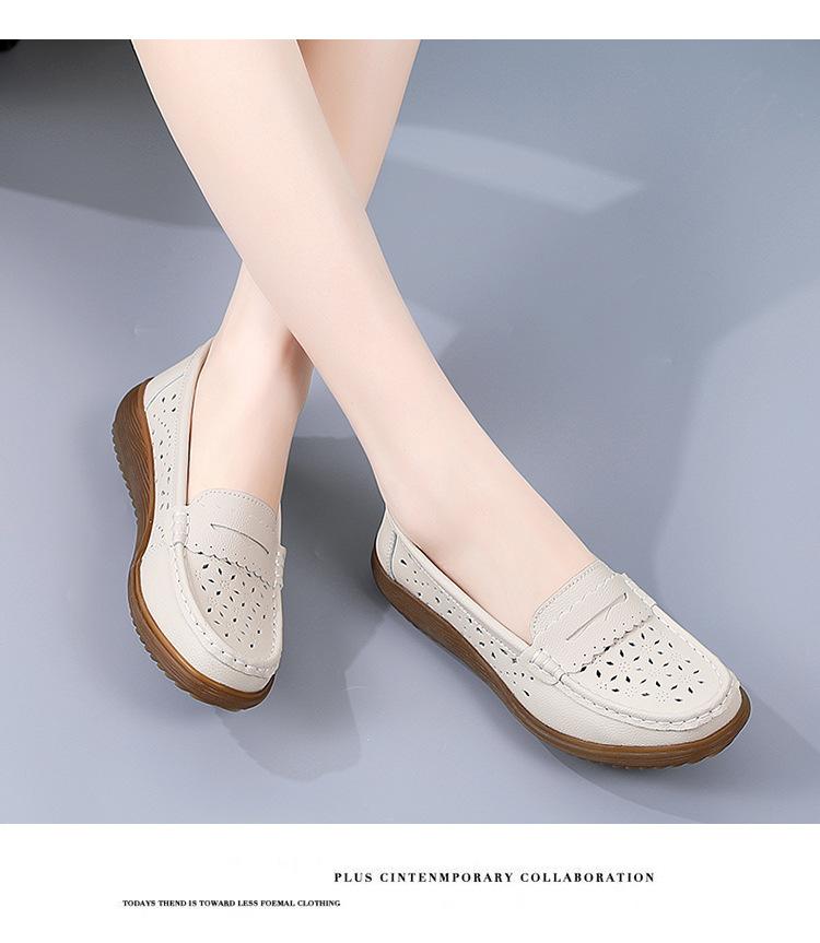 Primavera Nuevo Estilo Suela Blanda Pies No Cansados Huecos Transpirables Zapatos de Madre Talla Grande Zapatos Tipo Beanie de Suela Plana Zapatos Casuales Slip-On de Mujer
