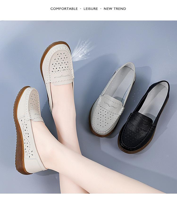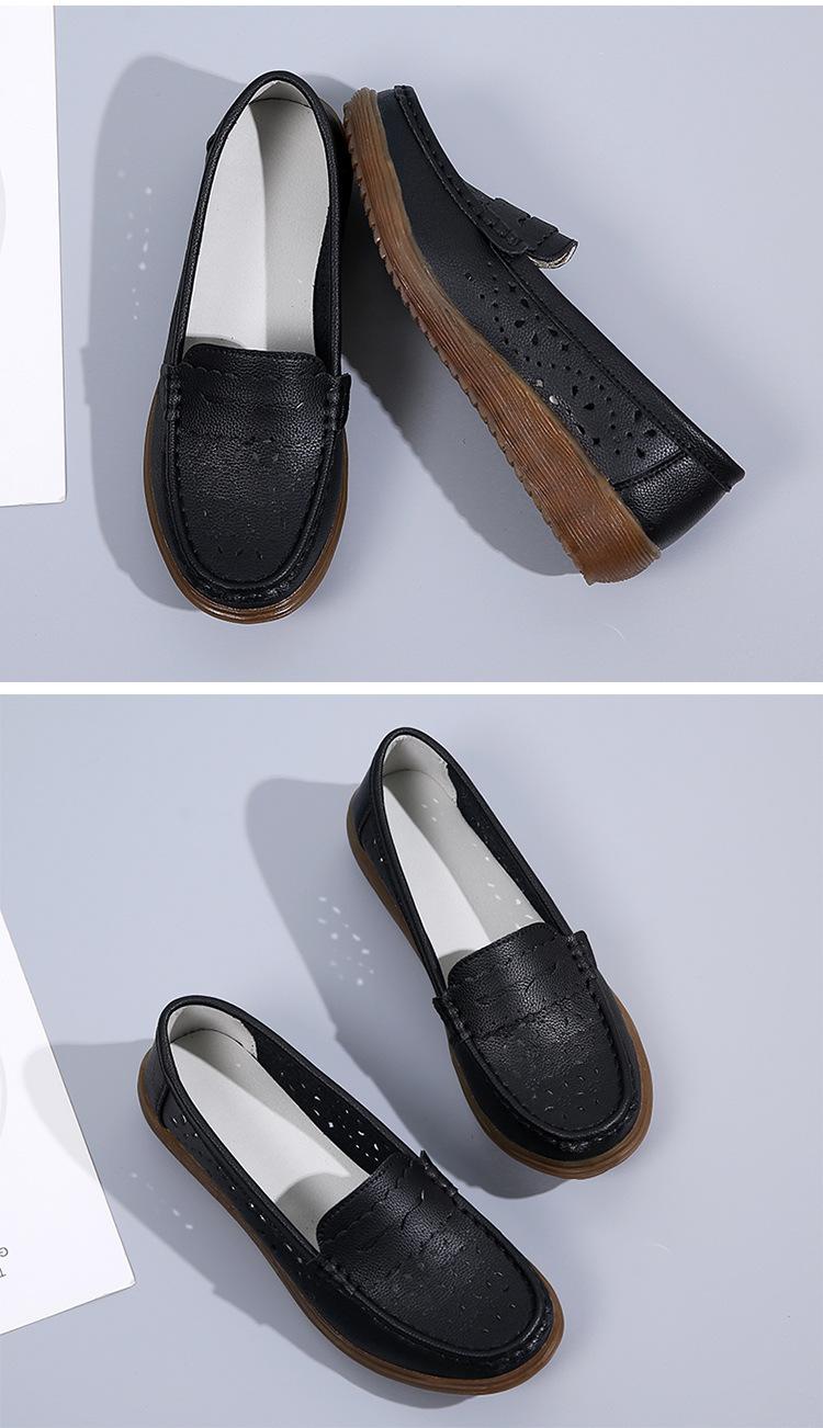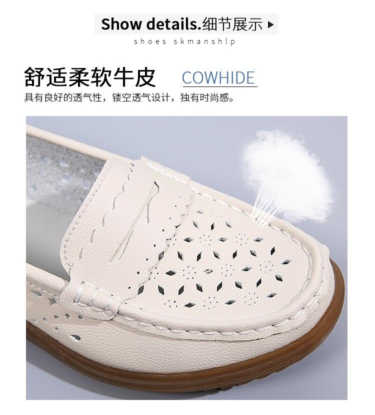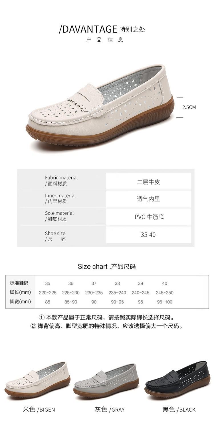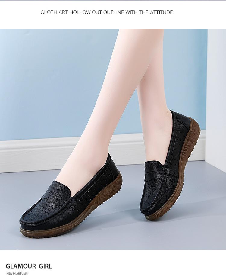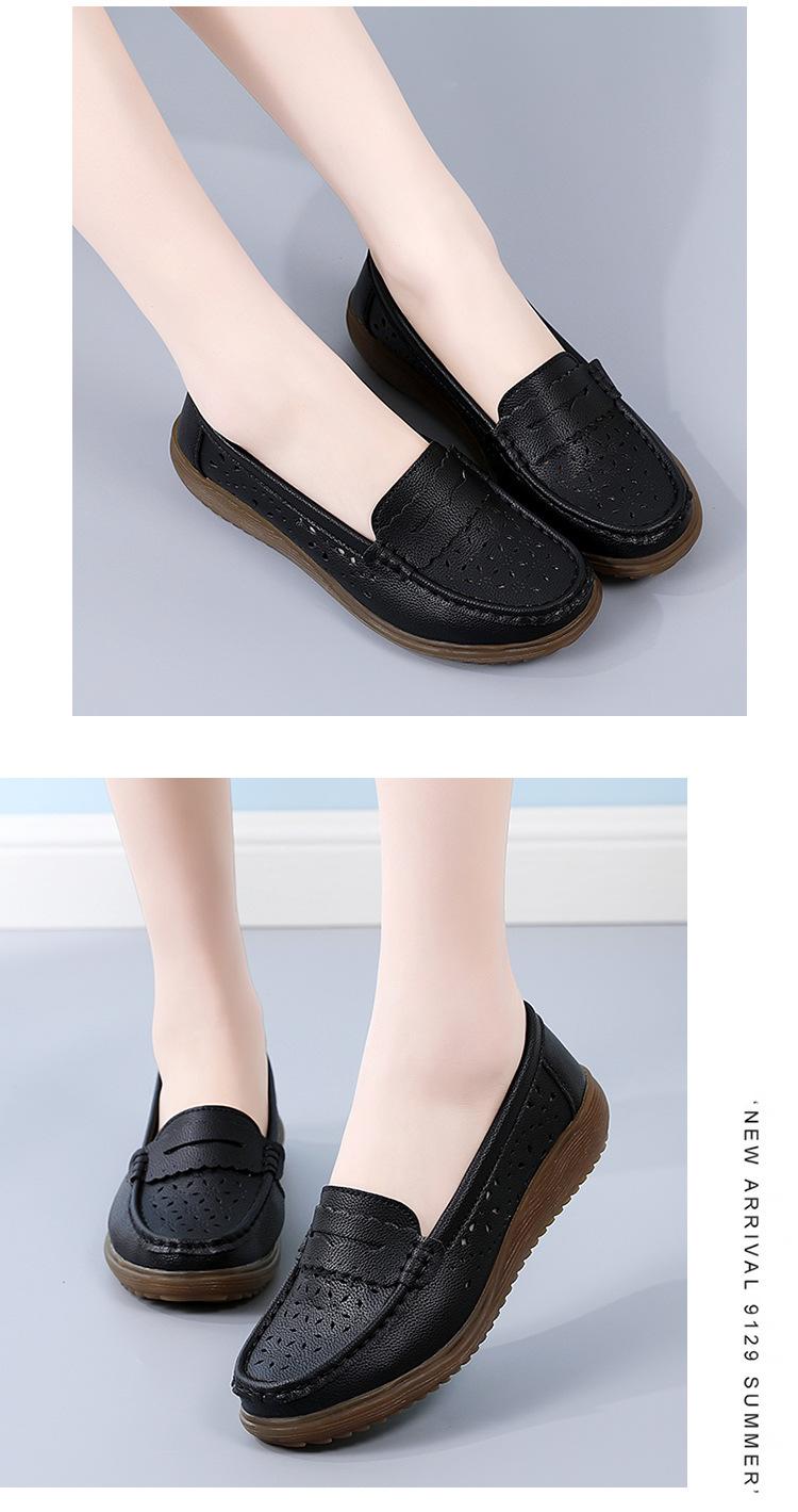 Primavera Nuevo Estilo Suela Blanda Pies No Cansados Huecos Transpirables Zapatos de Madre Talla Grande Zapatos Tipo Beanie de Suela Plana Zapatos Casuales Slip-On de Mujer