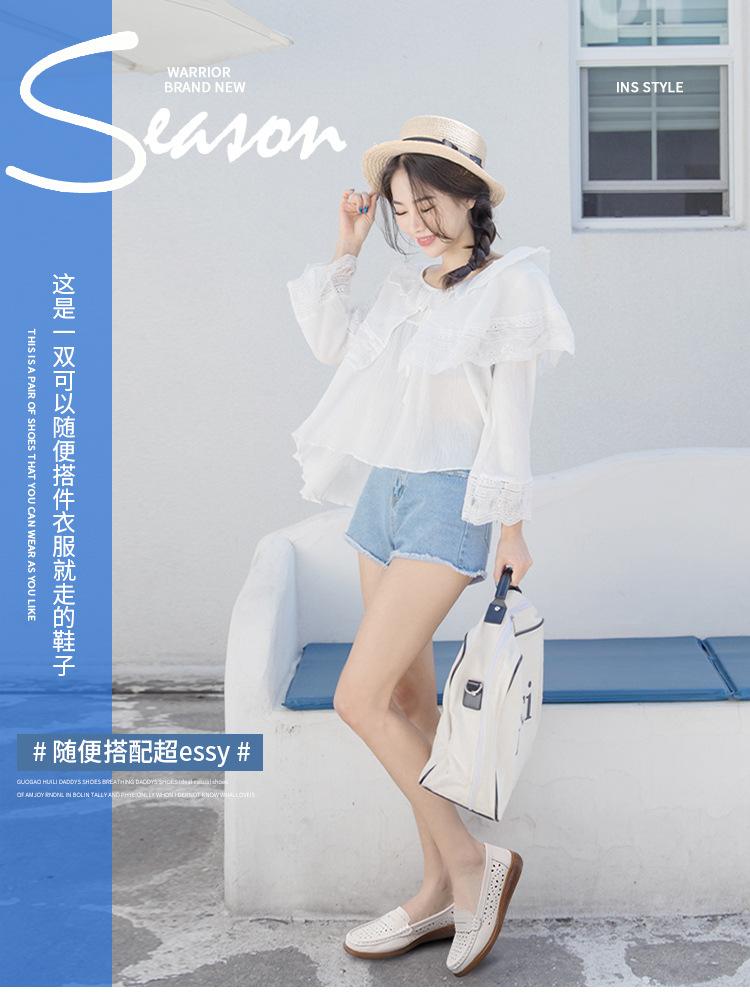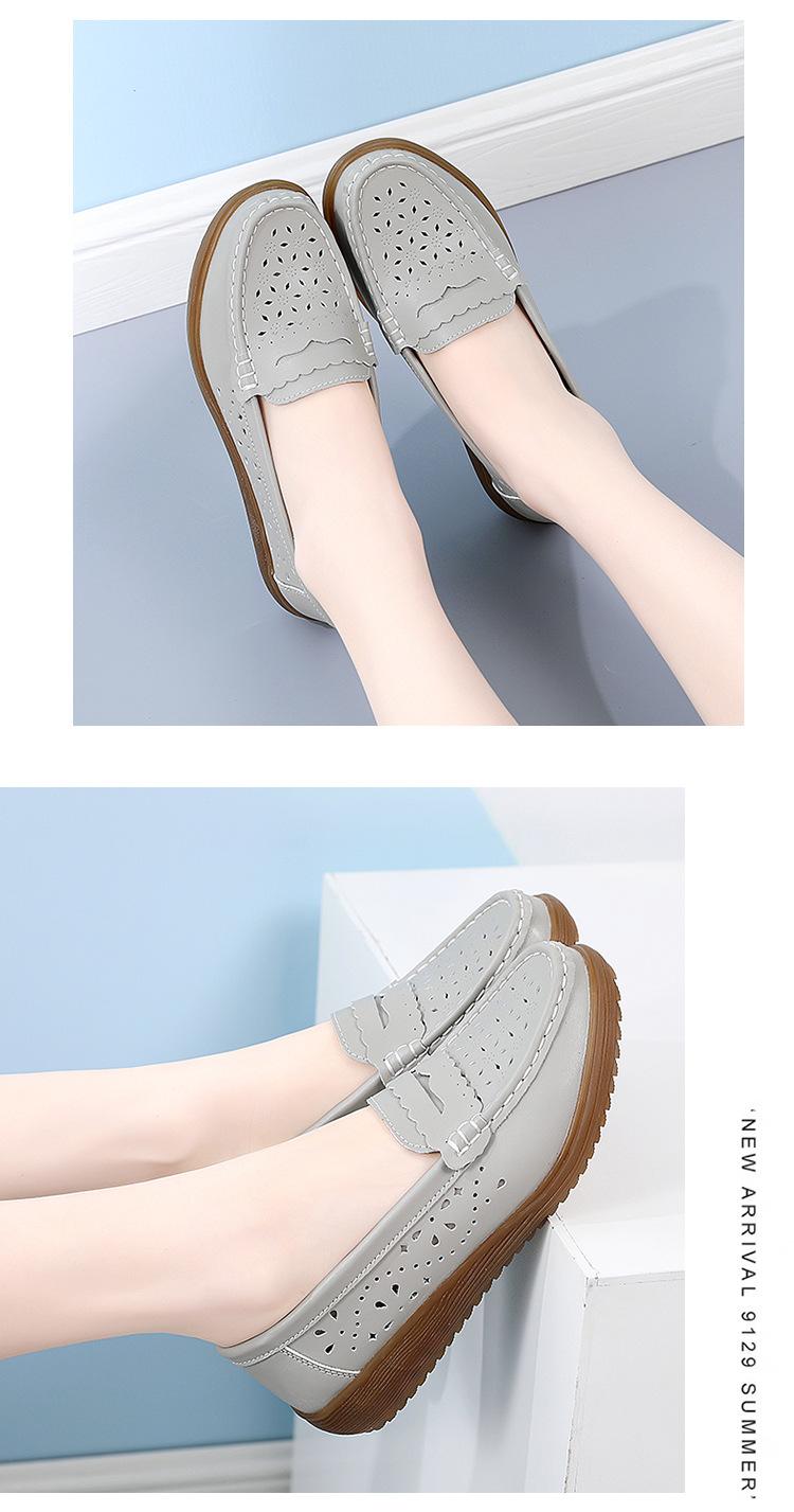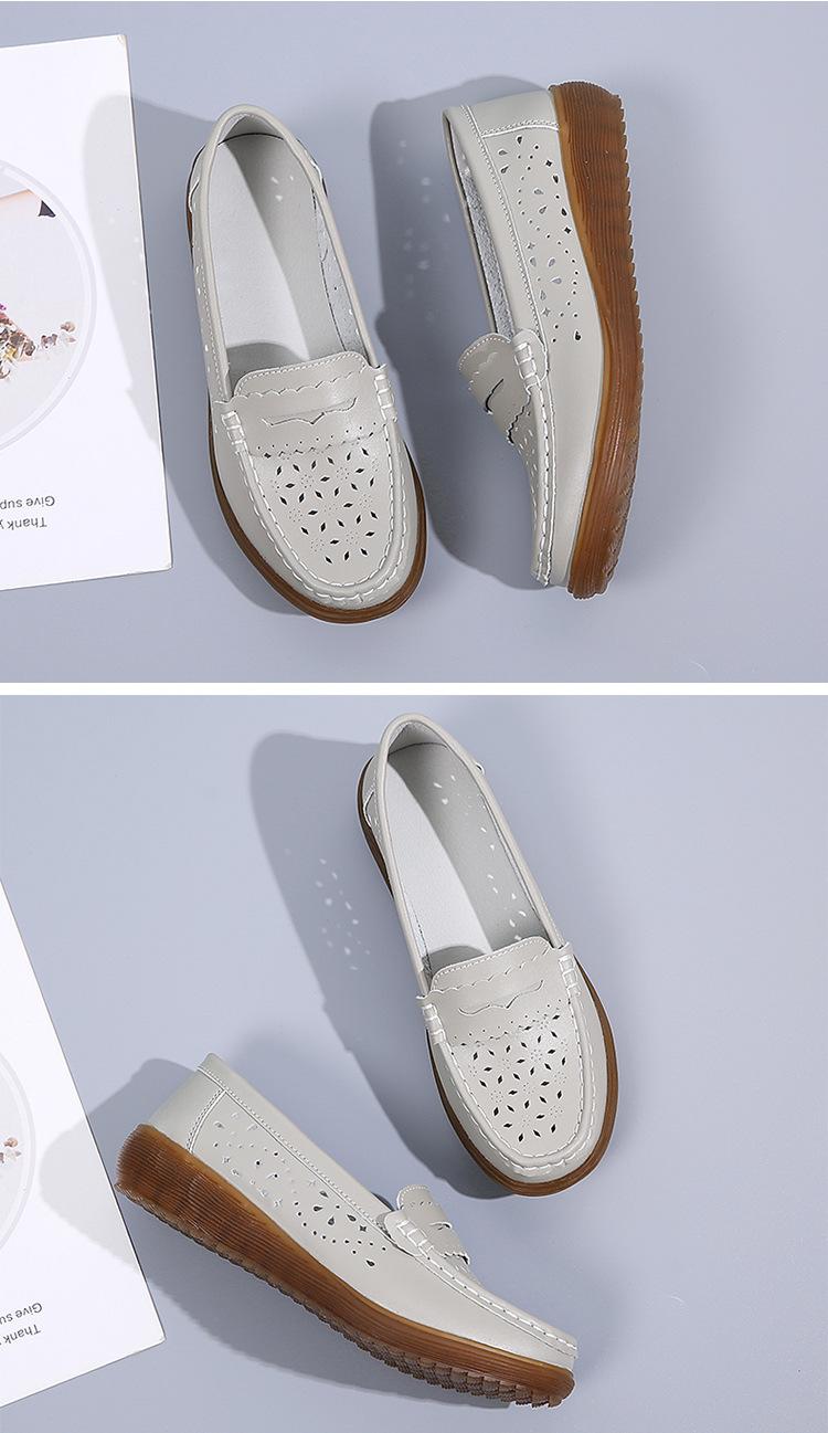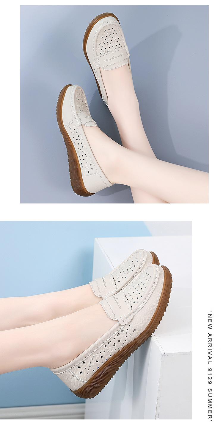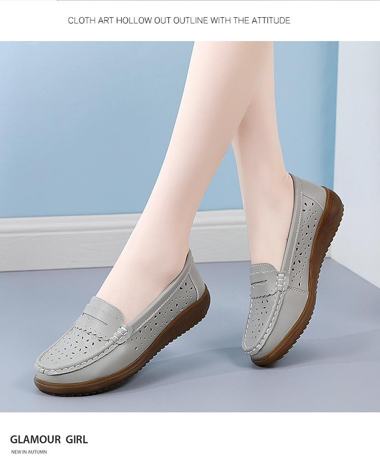 Primavera Nuevo Estilo Suela Blanda Pies No Cansados Huecos Transpirables Zapatos de Madre Talla Grande Zapatos Tipo Beanie de Suela Plana Zapatos Casuales Slip-On de Mujer