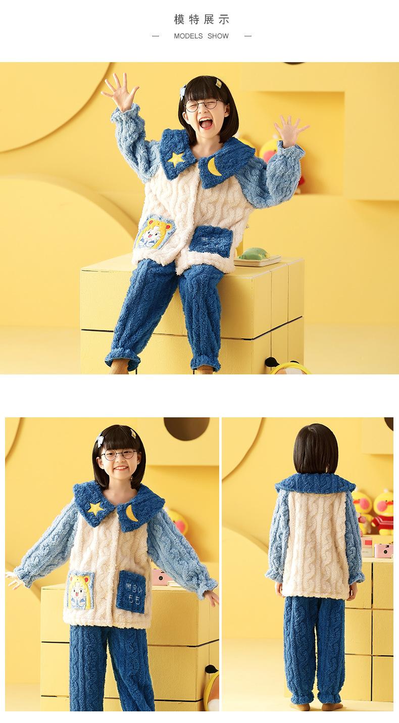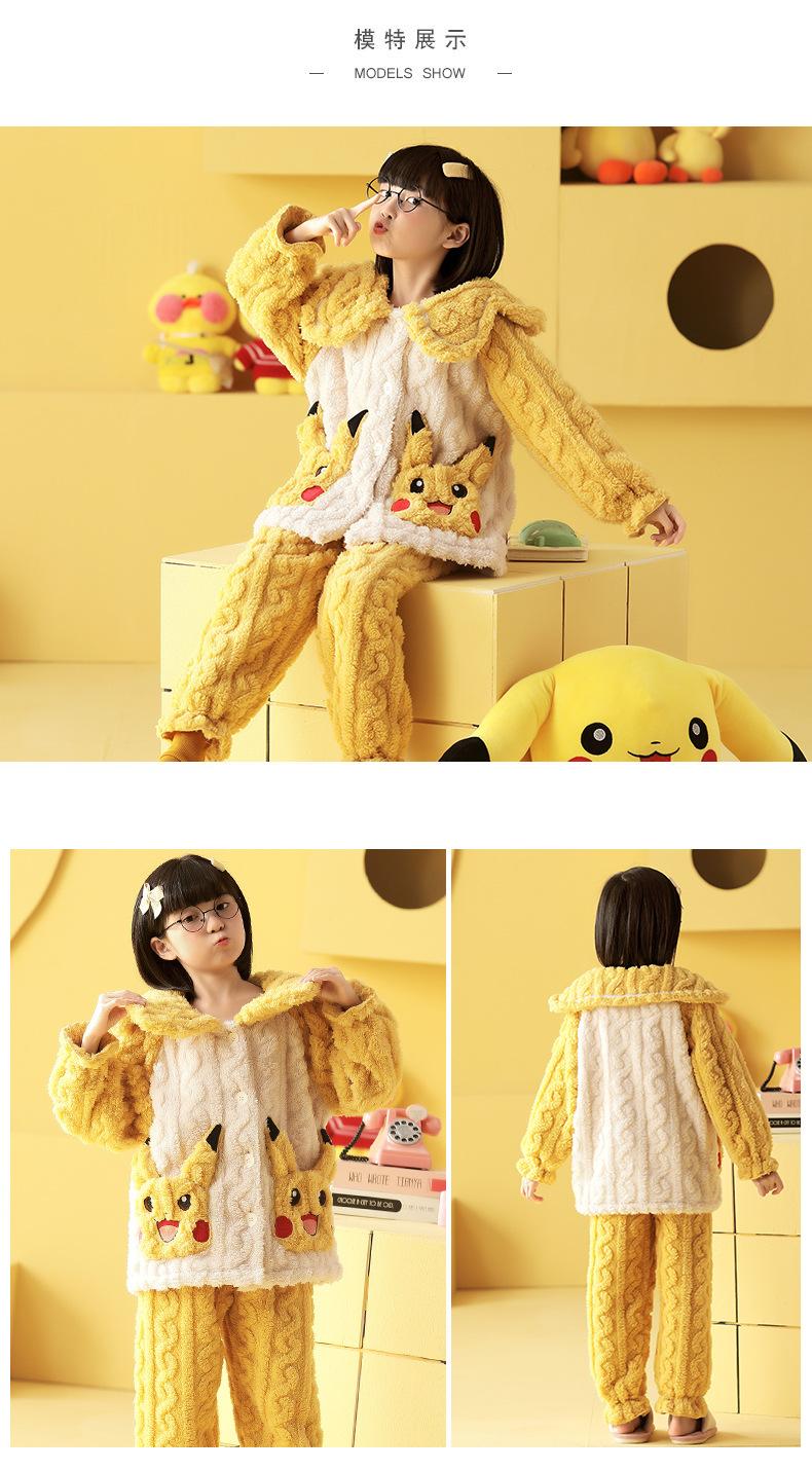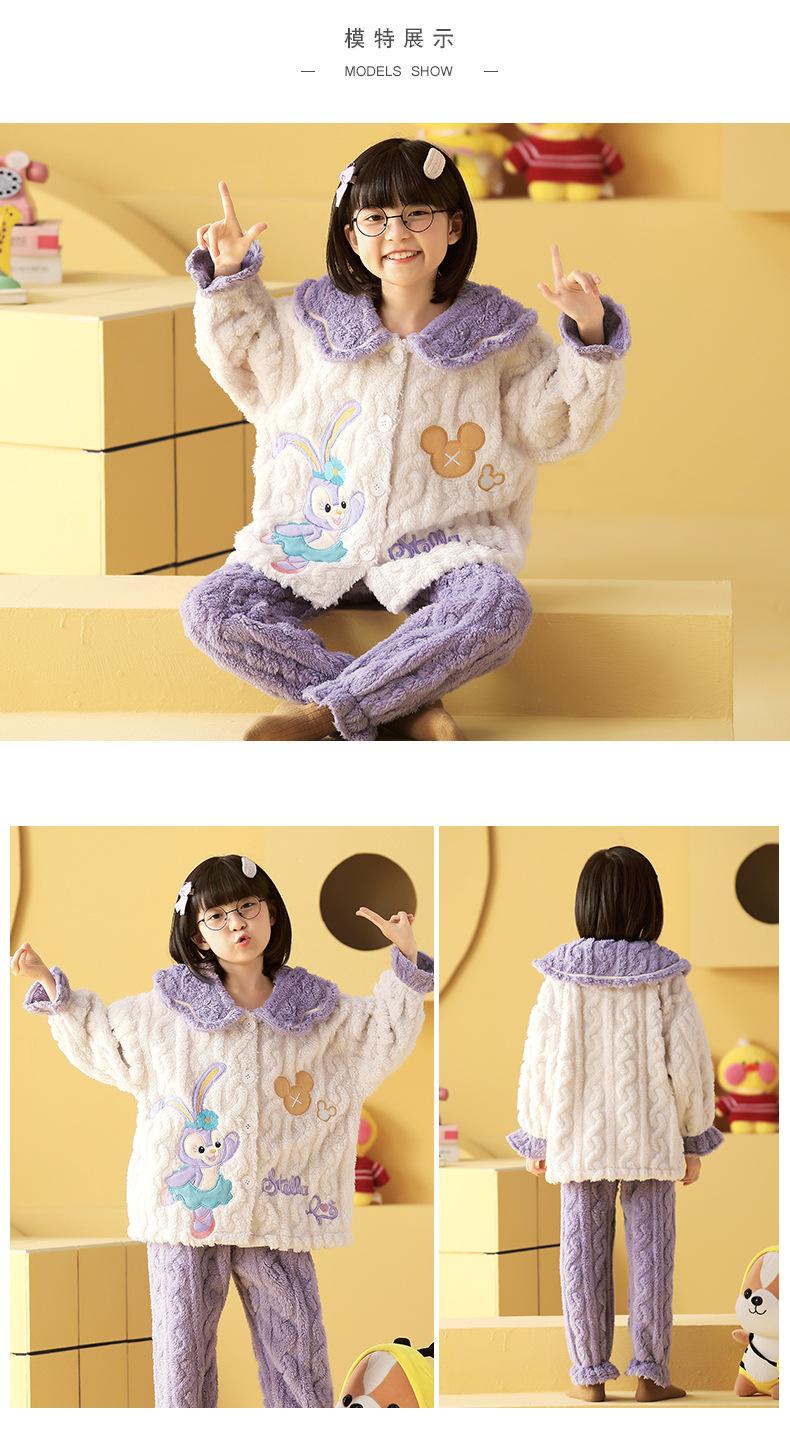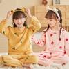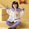 Pijama de cárdigan de polar coral bonito para niñas, otoño e invierno, ropa de invierno de franela cálida y gruesa para niñas, ropa de casa de moda