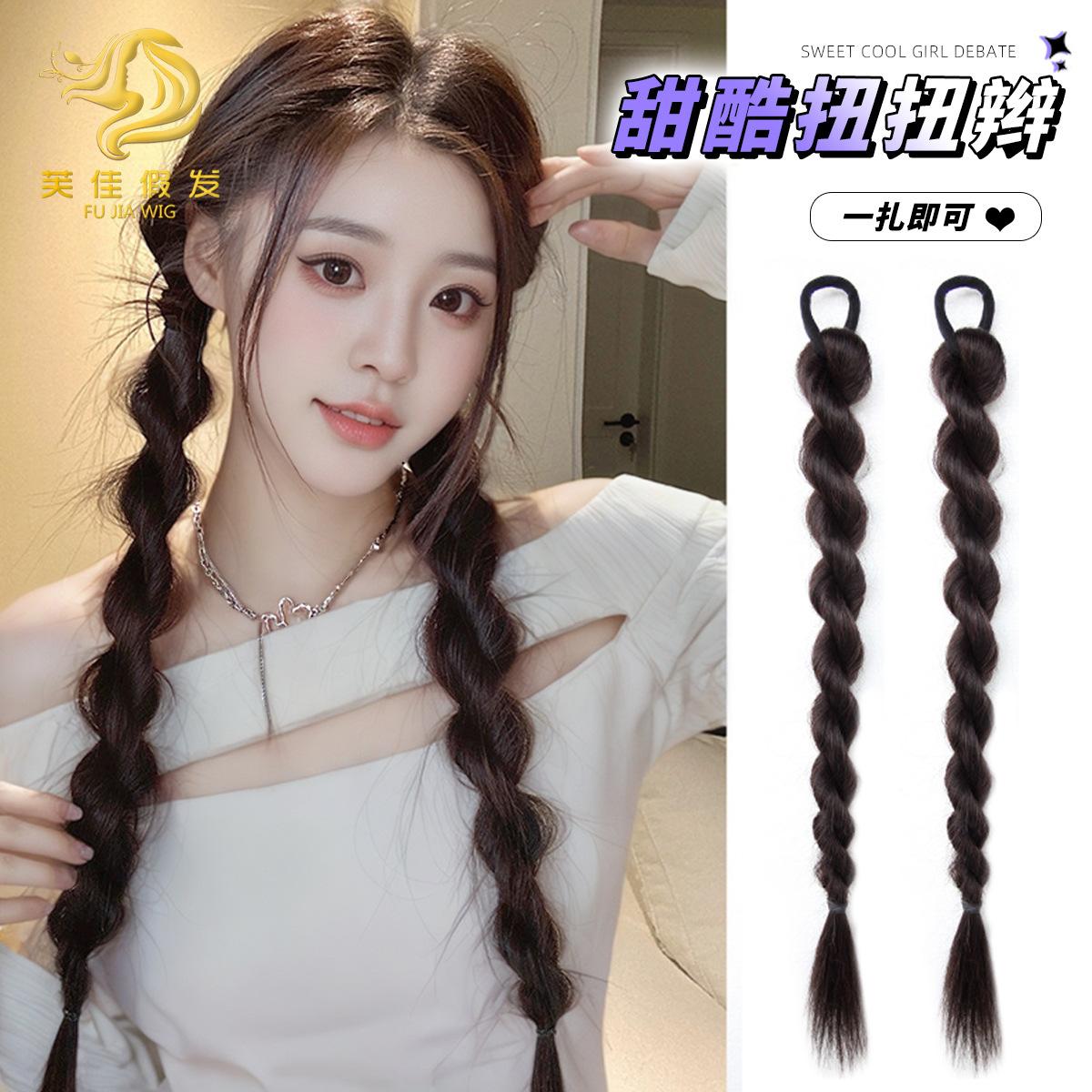 Trenza de Pelo Falso para Niños Nueva China Doble Cola de Caballo Trenza Torcida Dulce Cool Trenza de Boxeadora Torcida Moda Natural Chica Caliente Cola de Caballo Falsa