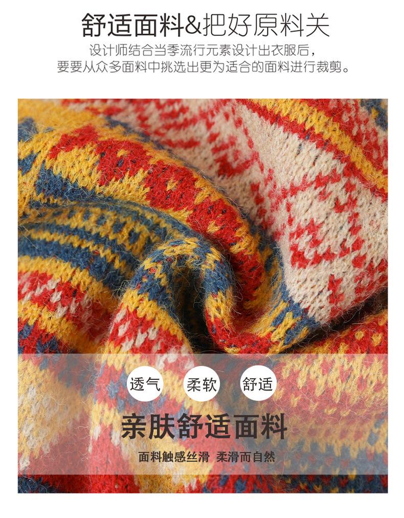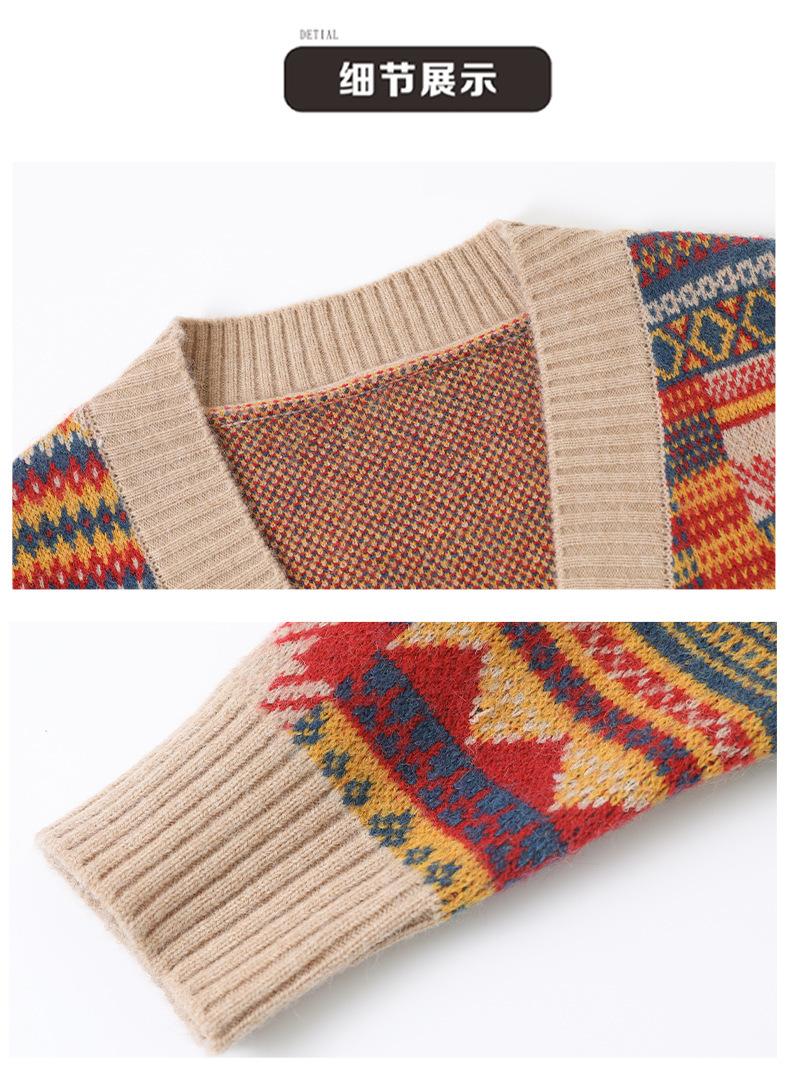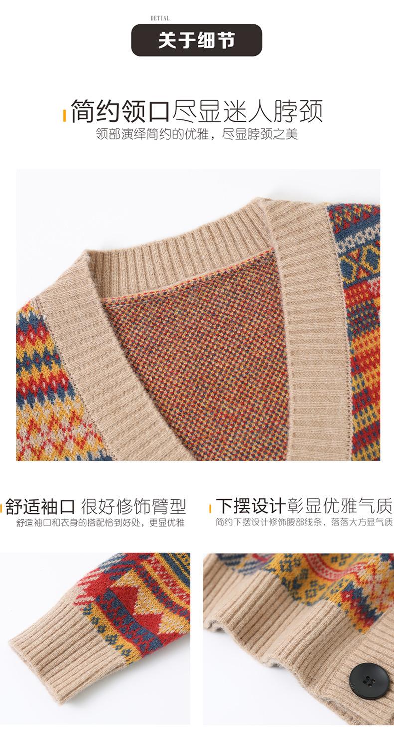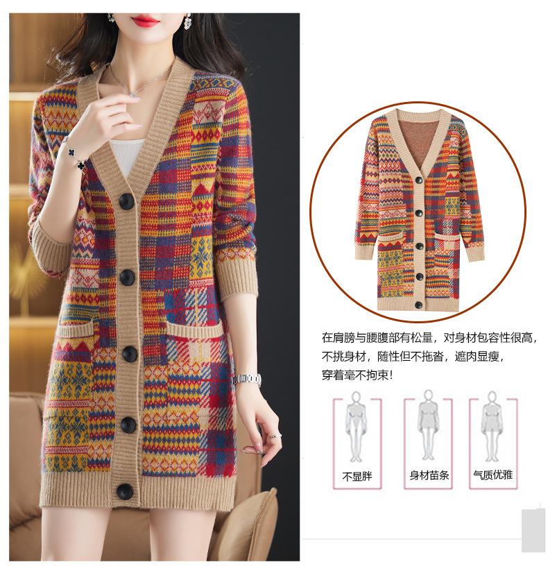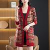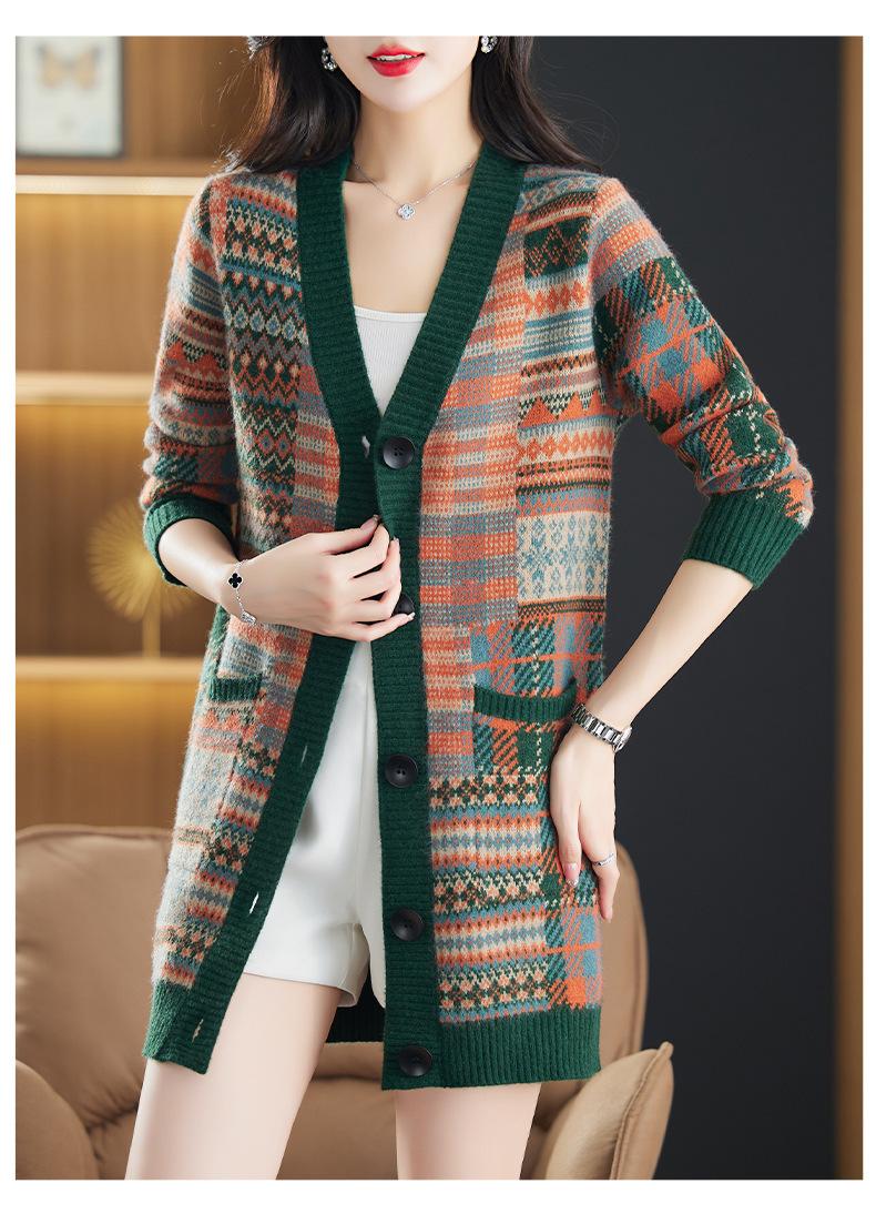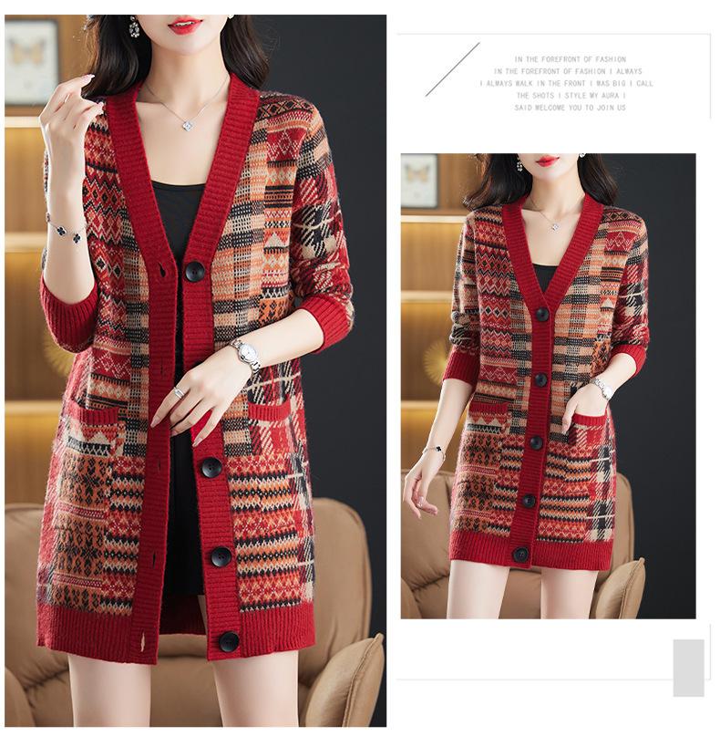 Cárdigan de punto holgado e informal de longitud media con contraste de color para mujer, suéter exterior de manga larga en jacquard, otoño 2023