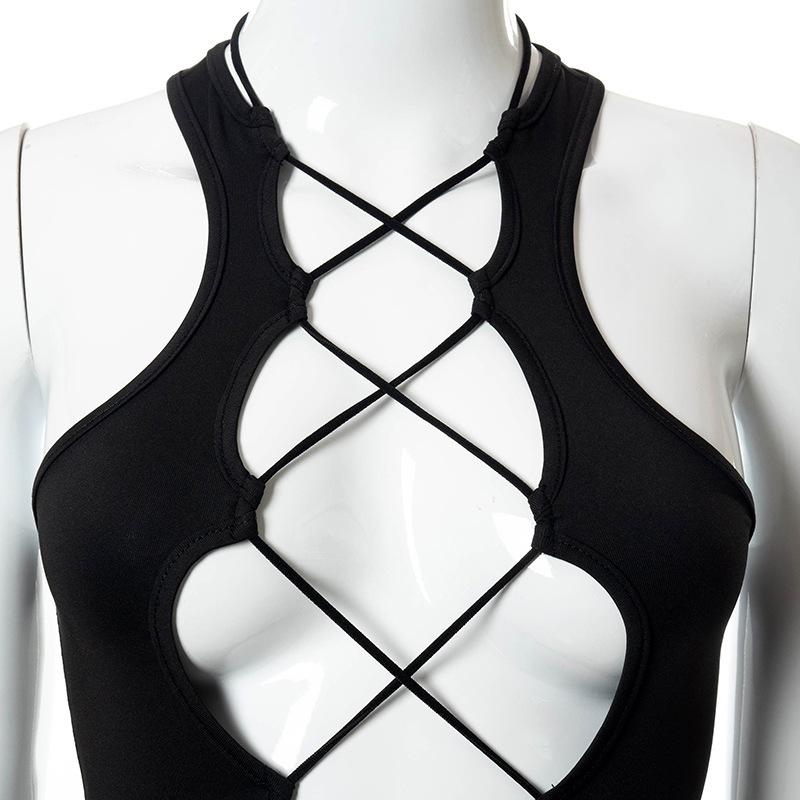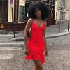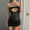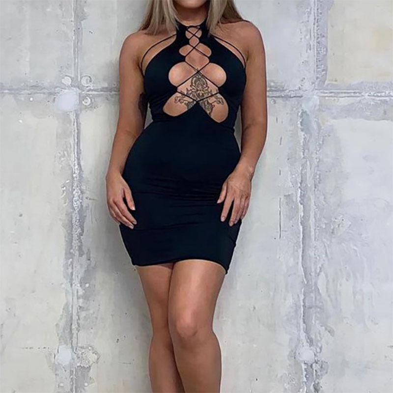 Vestido informal de verano 2023 con tirantes huecos y hombros descubiertos para mujer europea y americana, nuevo, de color liso