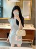 Vestido de punto adelgazante de cintura de moda de verano nueva moda para mujer temperamento estilo suave falda de manga corta