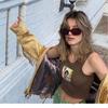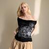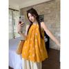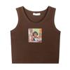 Chaleco corto ajustado sin mangas con estampado de color curry marrón retro estilo americano para mujer, estilo verano