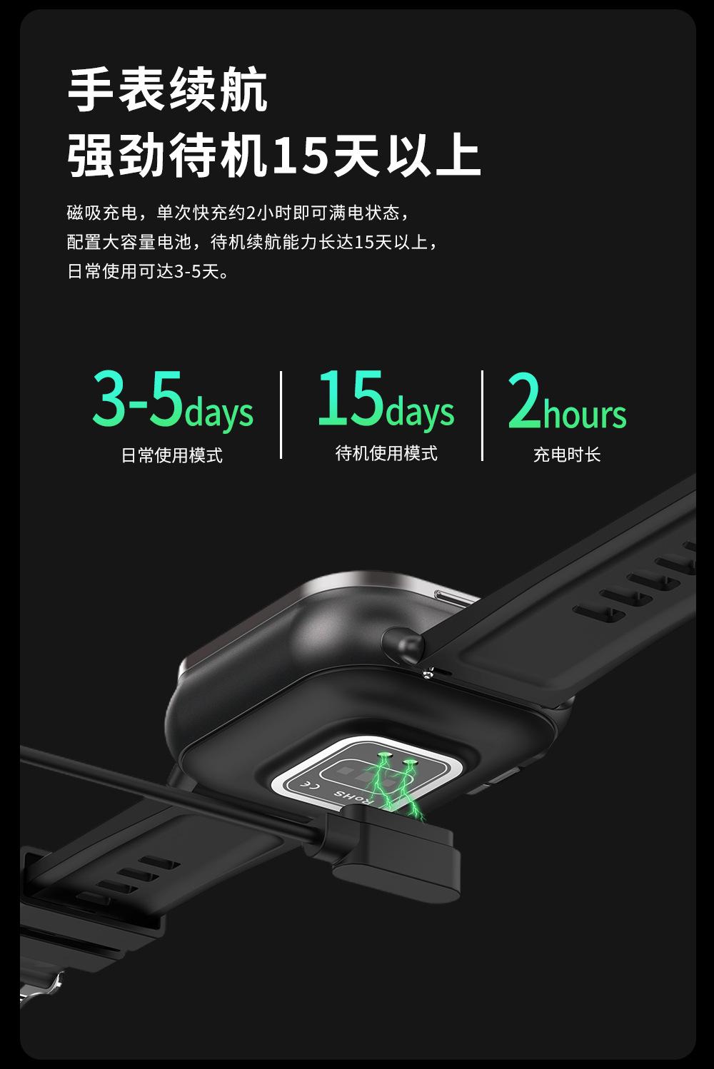 Tiempo de funcionamiento: 3-5 días, Tiempo de carga: 2 horas, Tiempo en espera: más de 15 días, Batería: 250 mAh, Método de carga: Carga magnética