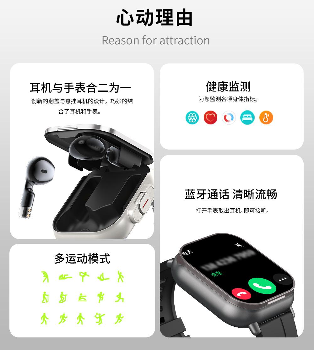 Modelo de producto: Auriculares Bluetooth D8 y reloj inteligente 2 en 1