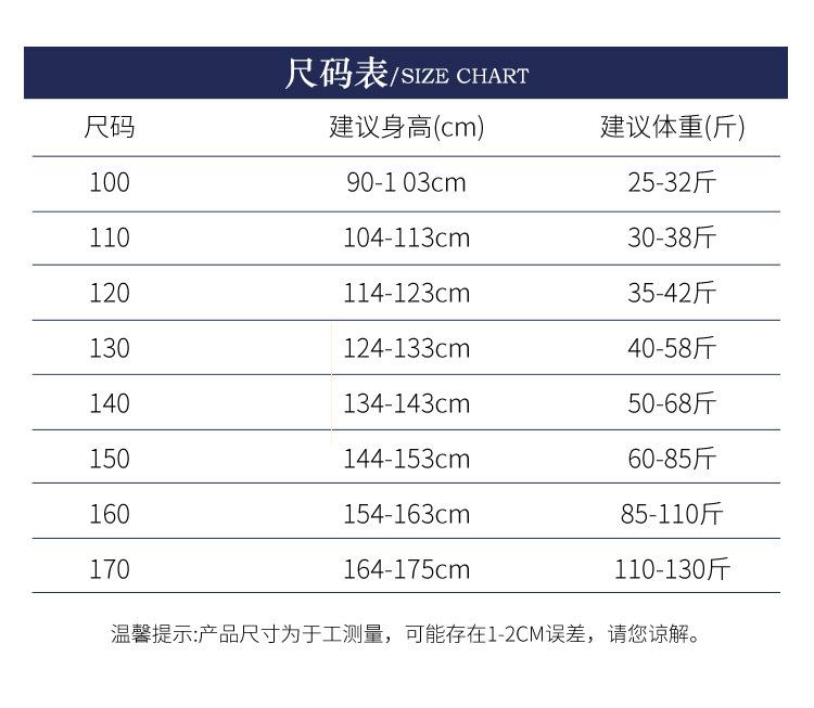 110cm, 120cm, 130cm, 140cm, 150cm, 160cm