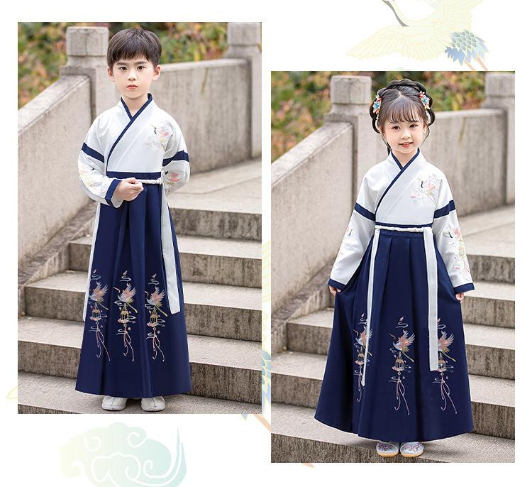 Disfraz de Hanfu para niño de escuela primaria, estilo chino, disfraz antiguo para niño, disfraz de niña para ceremonia de apertura, disfraz de escuela china para niños con sutra de tres caracteres