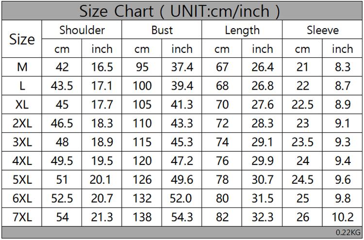 M, L, XL, 2XL, 3XL, 4XL, 5XL, 6XL, 7XL