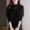 Suéter de cuello redondo para mujer, jersey de color liso para otoño e invierno, jersey de punto de manga larga, camiseta holgada, top, novedad de 2023
