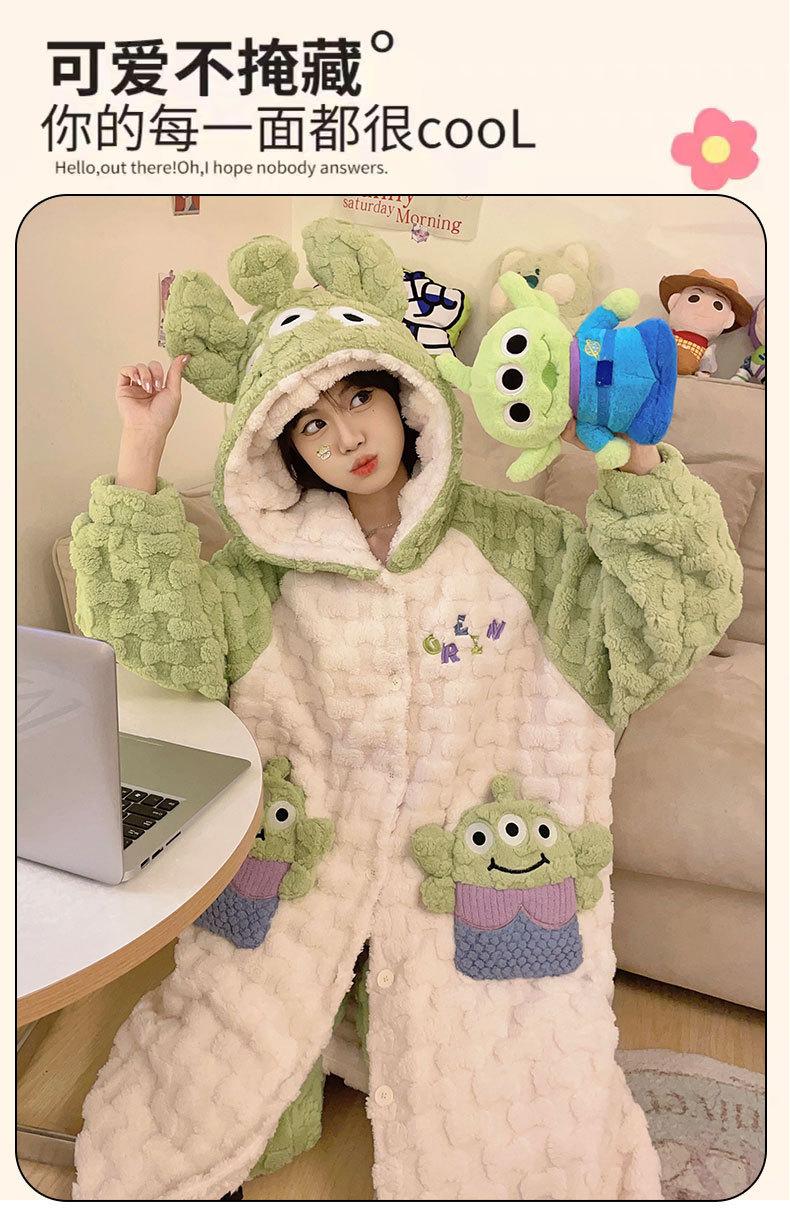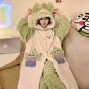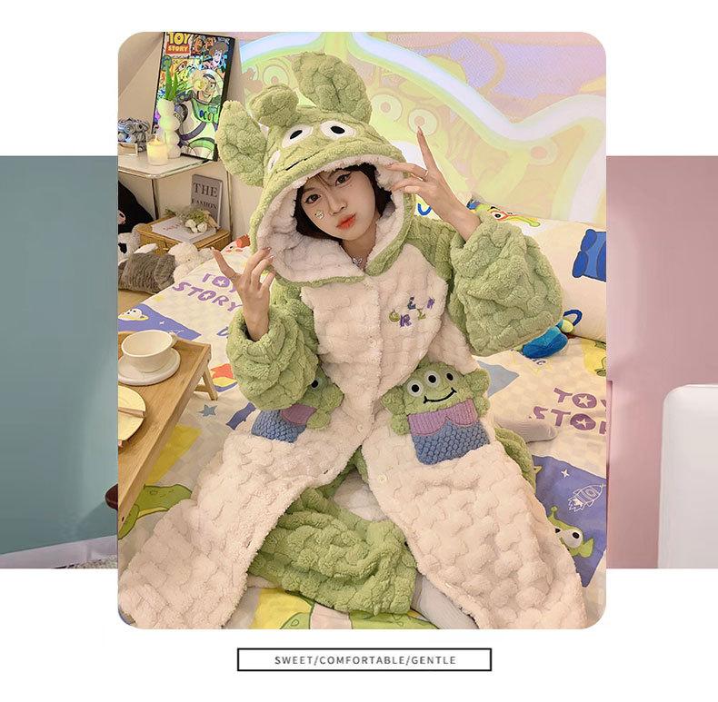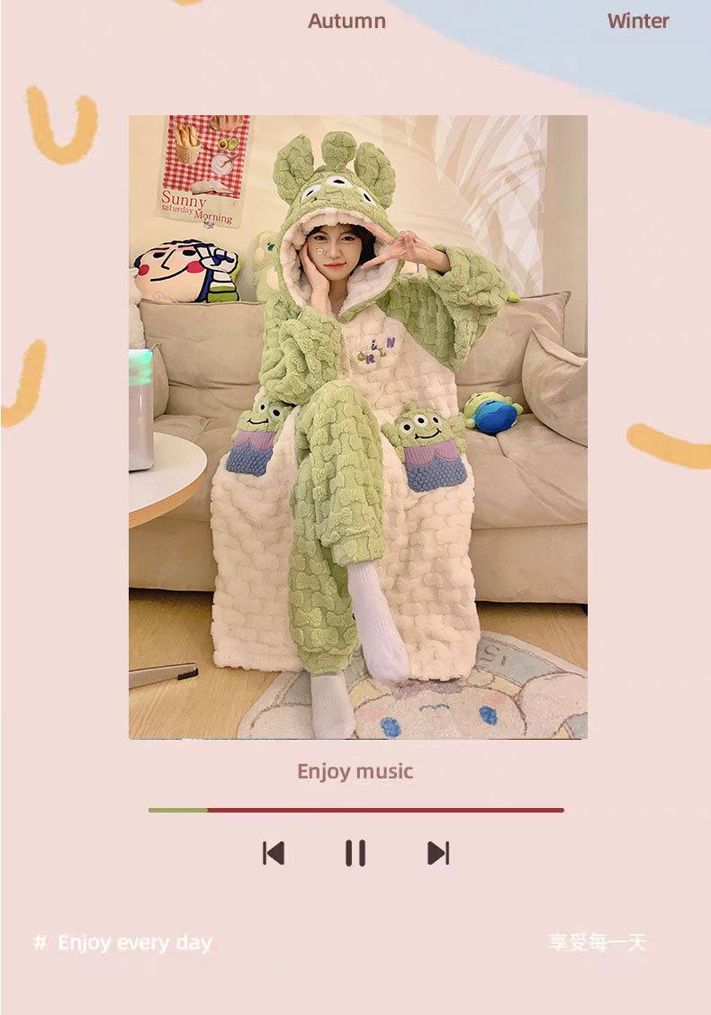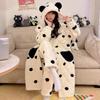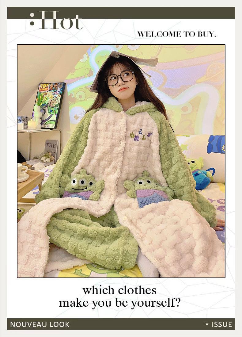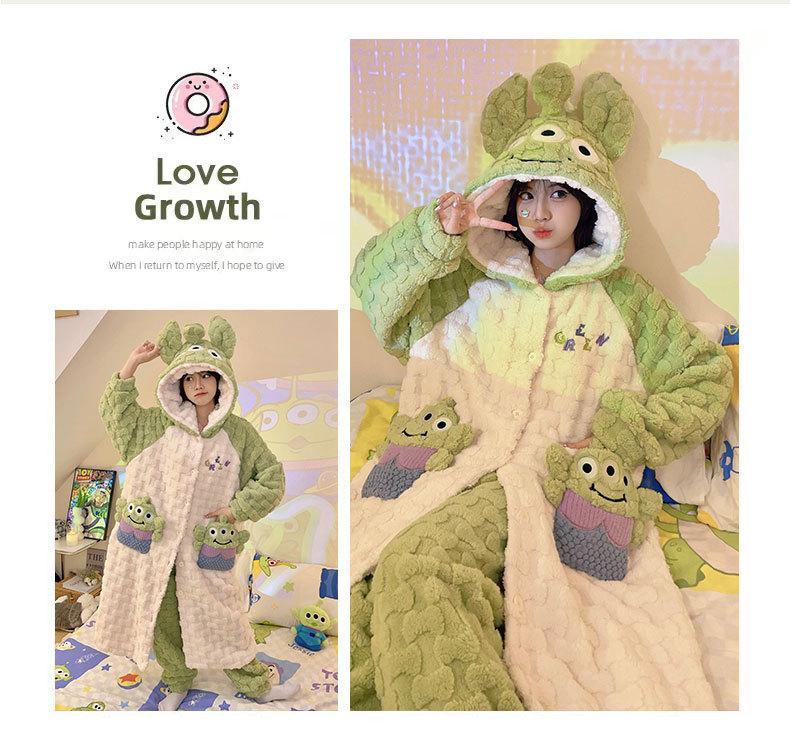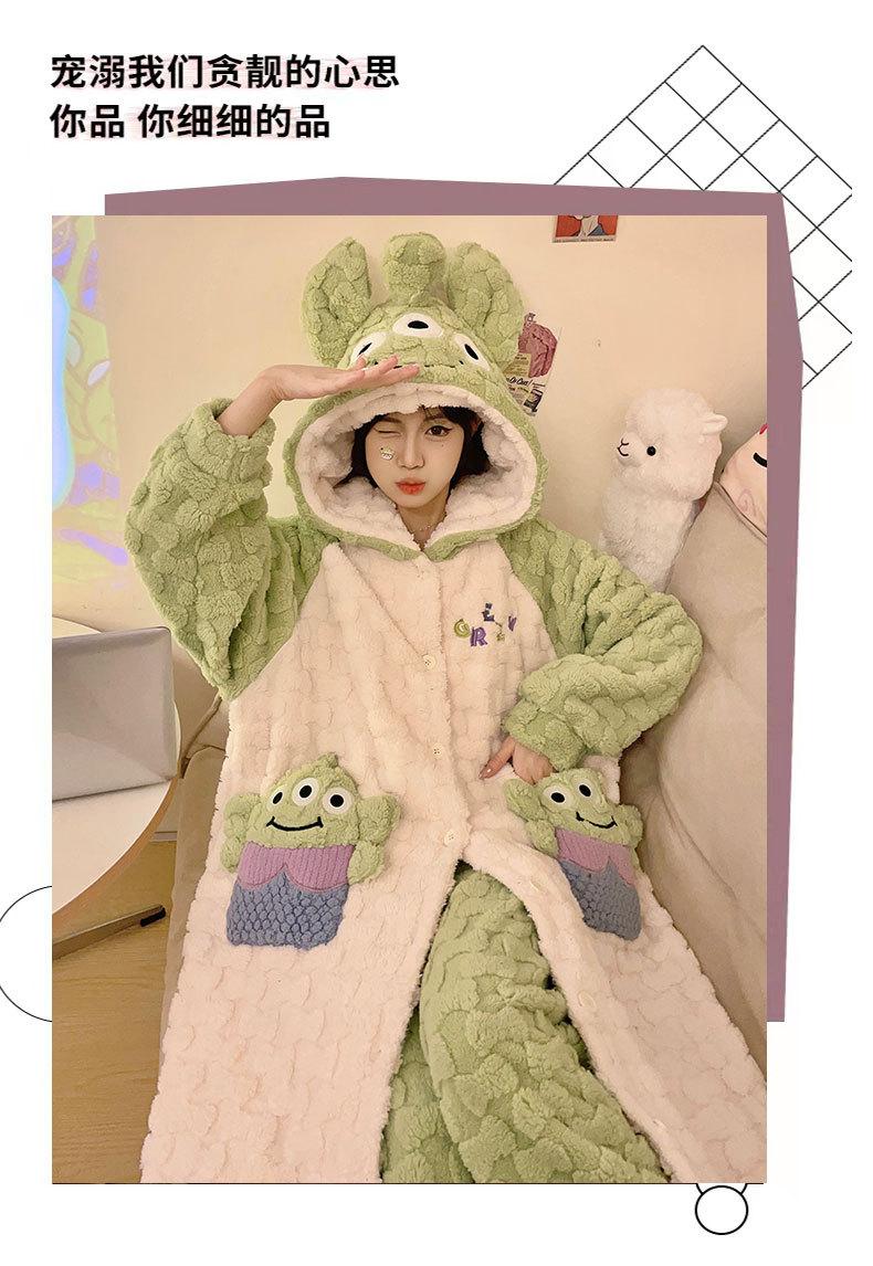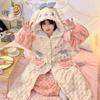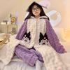 Pijama de lana coral para mujer, otoño e invierno, bonito albornoz grueso con forro polar, camisón largo de franela para el hogar