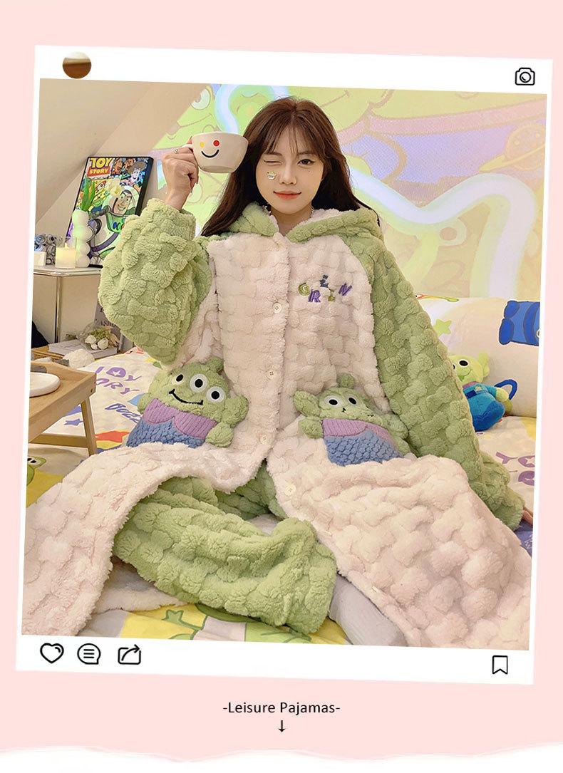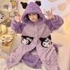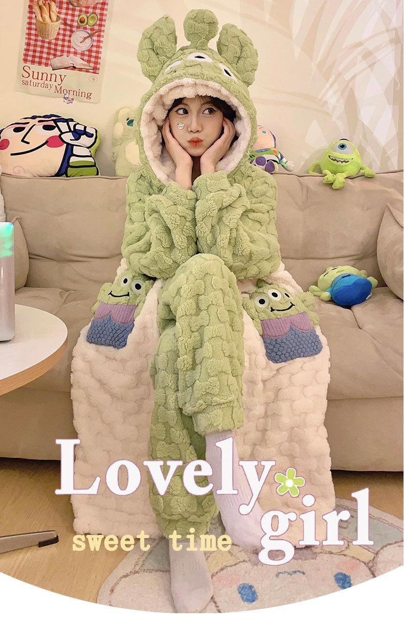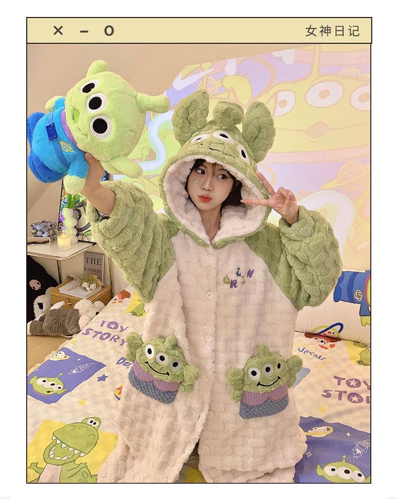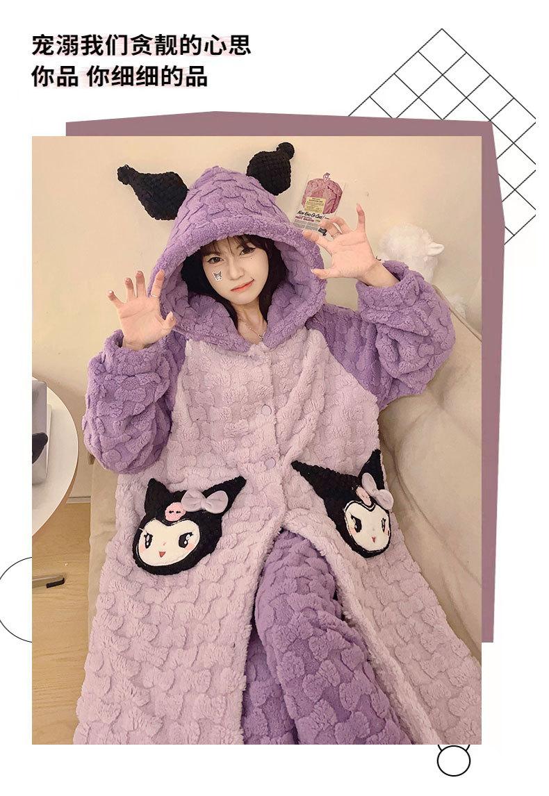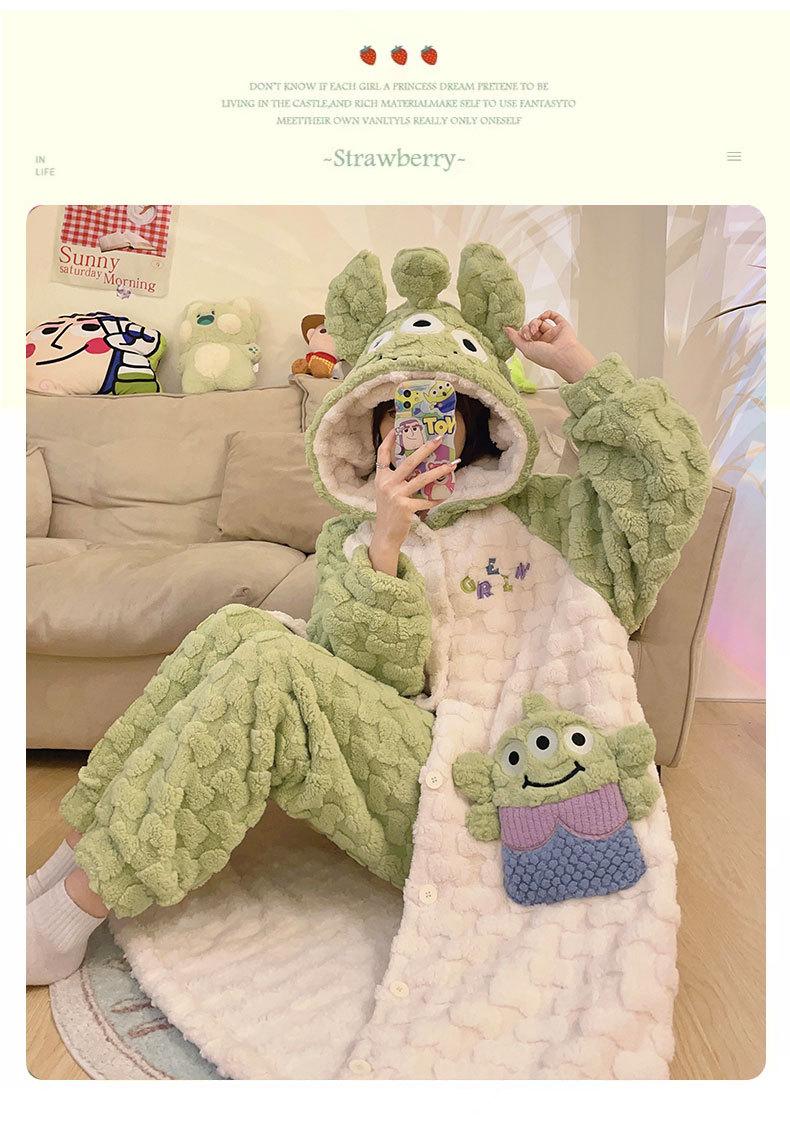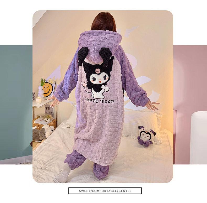 Pijama de lana coral para mujer, otoño e invierno, bonito albornoz grueso con forro polar, camisón largo de franela para el hogar