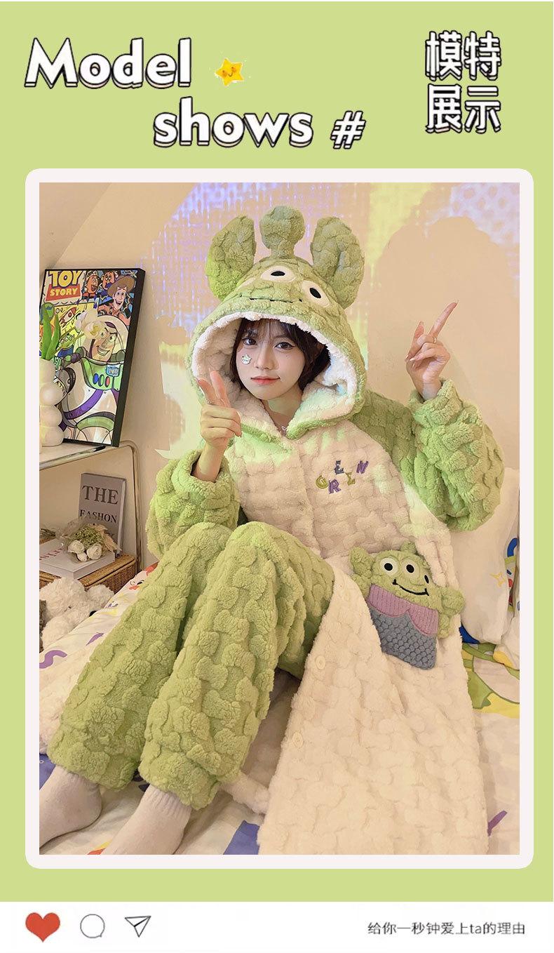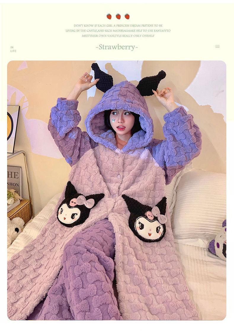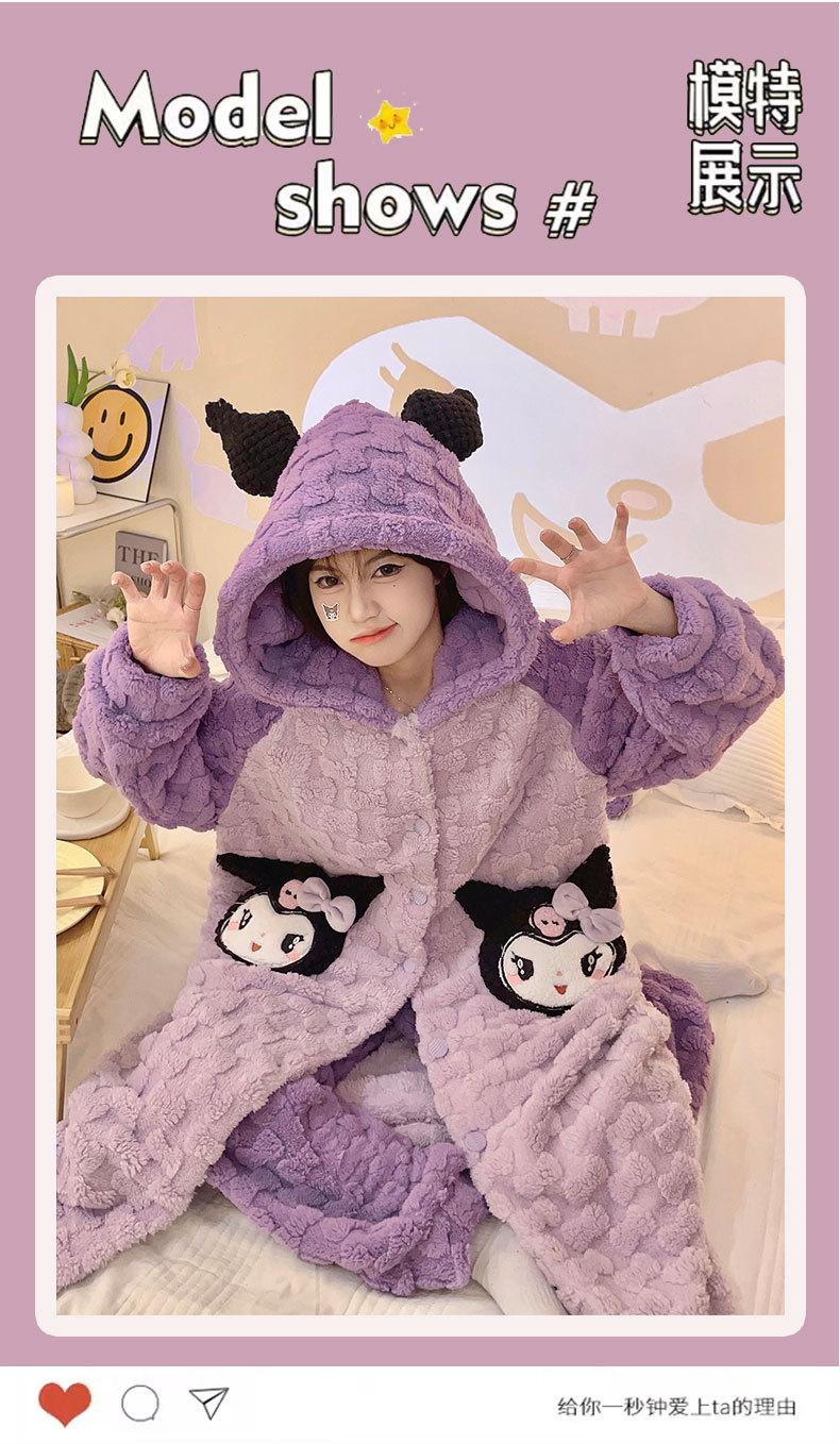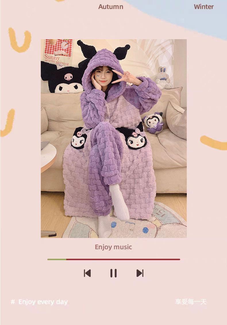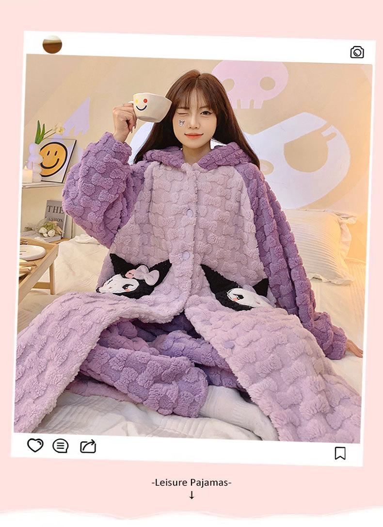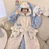 Pijama de lana coral para mujer, otoño e invierno, bonito albornoz grueso con forro polar, camisón largo de franela para el hogar