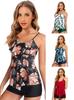Traje de baño Jufanni 2022 con falda dividida, estilo europeo y americano, tankini con cuello halter y lazo fruncido con estampado floral